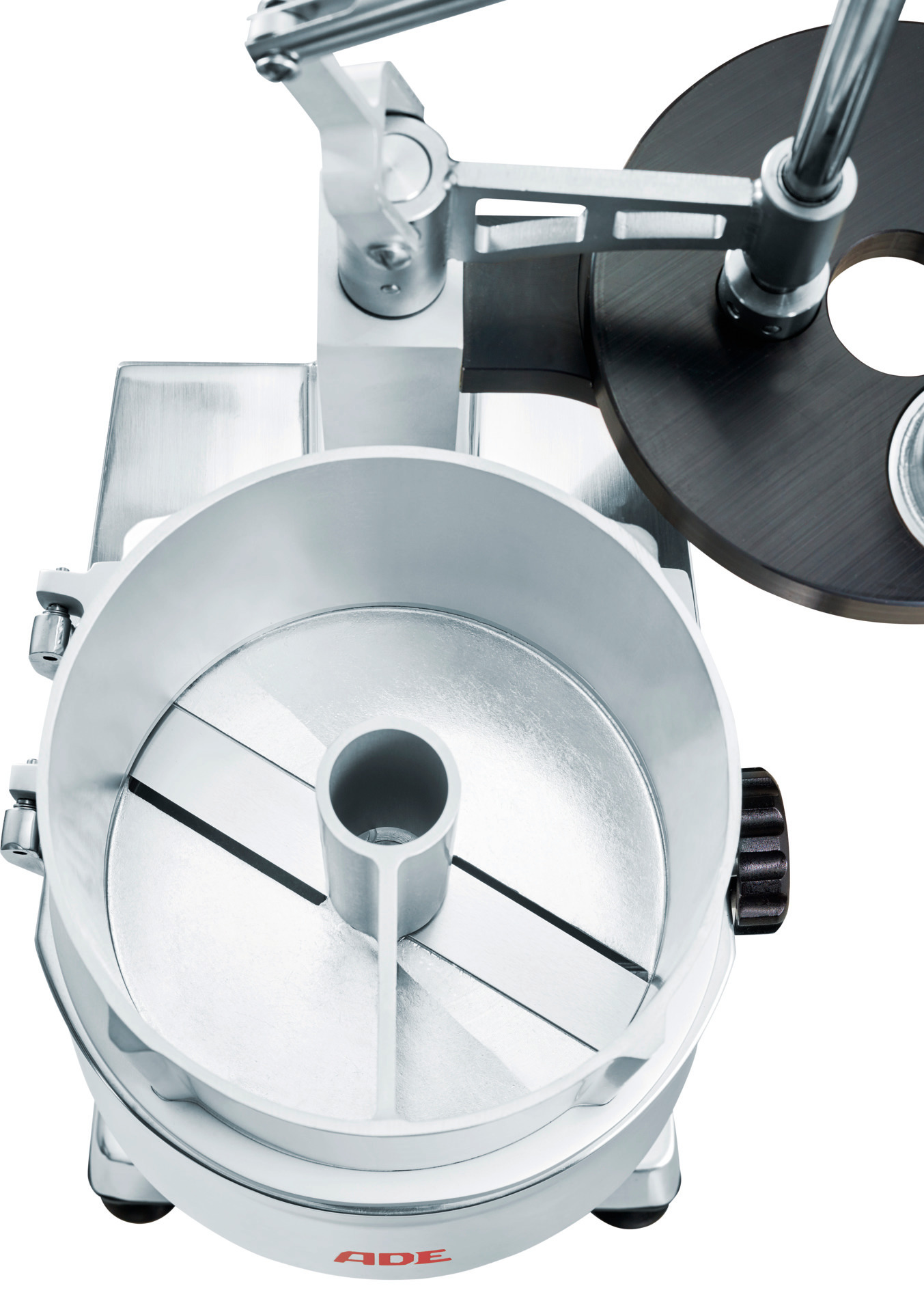 ADE GemüseschneiderVitalis Pro › zeitsparendes Schneiden von Gemüse, Früchten und Mozzarella› Arbeitstrichter und Sockel aus eloxiertem Aluminium› Deckel mit großer Einfüllöffnung (mit Haltesteg)› robuster Bajonett-Deckelverschluss› Gehäuse, Deckel, Presshebel und Scheibenwelle aus nicht rostendem Stahl› Stößel, Presser und Sammelbehälter aus widerstandsfähigem Kunststoff› höchste Sicherheit während des Betriebs und der Reinigung durch Sensor gesteuerte Abschaltautomatik› einfache Bedienung durch zwei Einfüllschächte für längliches / rundes (ø 50 mm) und ovales (ø 192 mm mit Steghalterung) Schneidgut› Ein- / Aus-Schalter – IP54› Einfache Reinigung durch leicht abnehmbaren Deckel› einfacher Scheibenwechsel› Lieferung ohne Scheiben› Topfgröße: 320 x 170 x 195 mm› Topfinhalt: 6,50 l brutto