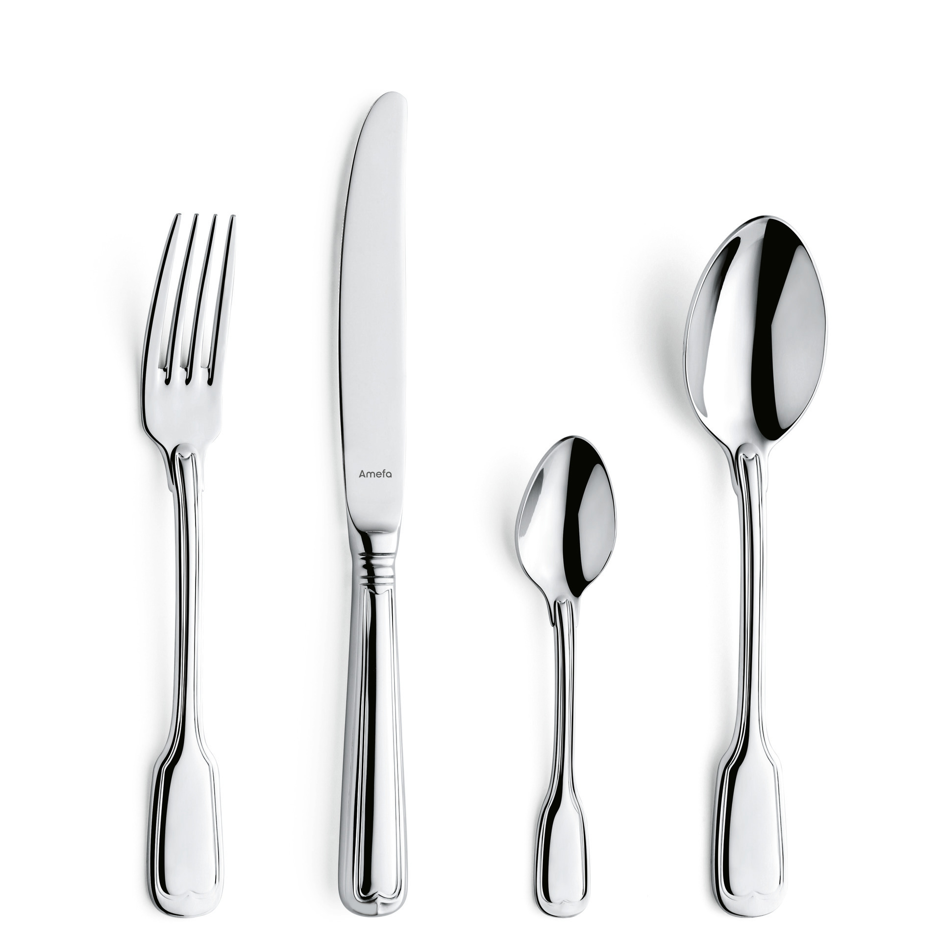 Amefa Augsburger Faden Augsburger Faden ist ein traditionelles Premium-Modell, das vor allem bei Top-Anwendern in der Gastronomie und Hotellerie zum Einsatz kommt. Der spatenförmige Stiel wird durch ein Fadenrelief unterstrichen und hat einen edlen Charme. Das Besteck Augsburger Faden passt besonders gut zu feinen, exquisiten Tischarrangements. Besondere Merkmale:› hochglänzend› poliert› rostfrei› 3,5 mm Materialstärke