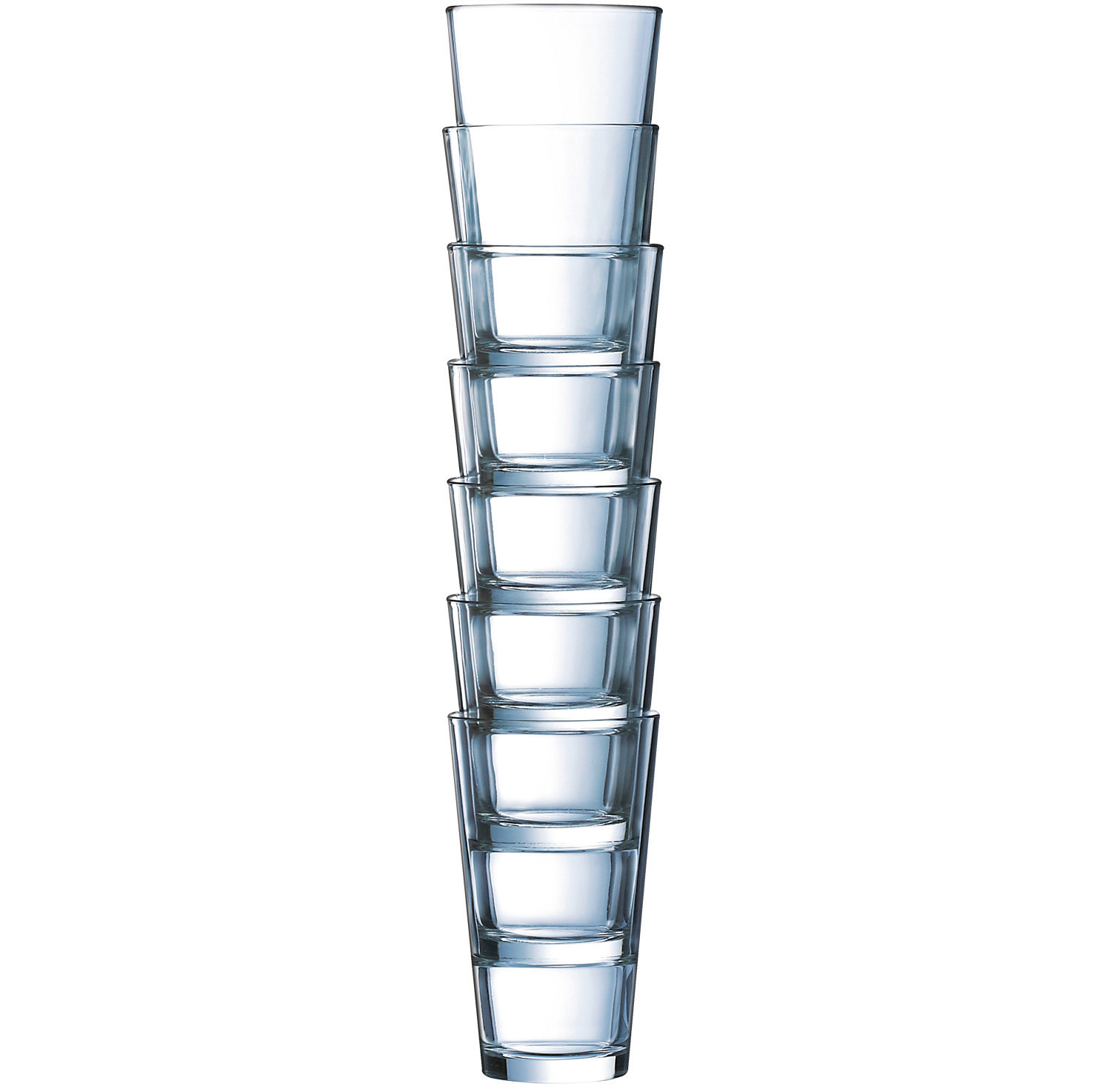 Arcoroc Stack Up Die Stack Up-Kollektion bietet eine Vielzahl praktischer Tricks. Diese stabilen Gläser mit starkem Boden sind stapelbar, so dass sie leicht weggeräumt und gelagert werden können. Die stilvolle Linie erleichtert das Messen von Aperitifs und Cocktails. Die Gläser der Serie Stack Up sind speziell auf die Verwendungen der Gemeinschaftsverpflegung, z. B. in Krankenhäusern und Großkantinen zugeschnitten. Sie zeichnen sich durch ihre extreme Bruchfestigkeit, sehr platzsparende Stapelfähigkeit und ihren günstigen Preis aus.