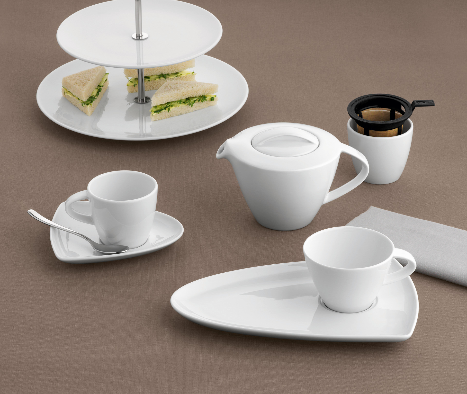 Bauscher Enjoy Das Designkonzept von Enjoy zeichnet sich durch innovative Formen und eine hohe Variabilität bei der Speisen- und Getränkepräsentation aus. Der natürliche Kurvenverlauf einer feingliedrigen Kette hat die Gestaltung inspiriert. Jeder Artikel formt eine Variation dieses Prinzips. So greifen die asymmetrischen Teile den eleganten Bogen einer liegenden Kette auf. Die auffällig gestalteten Teller und Untertassen beschreiben diese Linie dezent mit ihrer geschwungenen Fahnengestaltung. Optisch ein wahrer Genuss. Besondere Merkmale:› dynamisch geformte, gut greifbare Henkel› klassische Fahnengestaltung› Vielzahl an Tassengrößen› asymmetrischen Teller und Setplatte