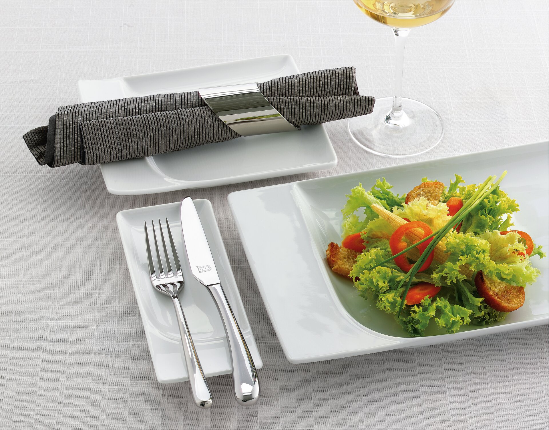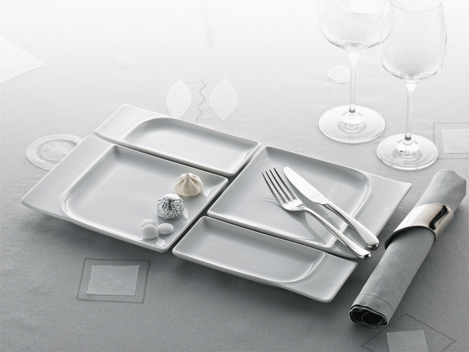 Klassische Eleganz � in einer klaren, zeitlosen Form. Der besondere Charme liegt in der Kombination aus runden und quadratischen Tellern und weich geschwungenen Hohlteilen. Ein anmutiger Purismus, der ganz unterschiedliche Anspr�che befriedigt.