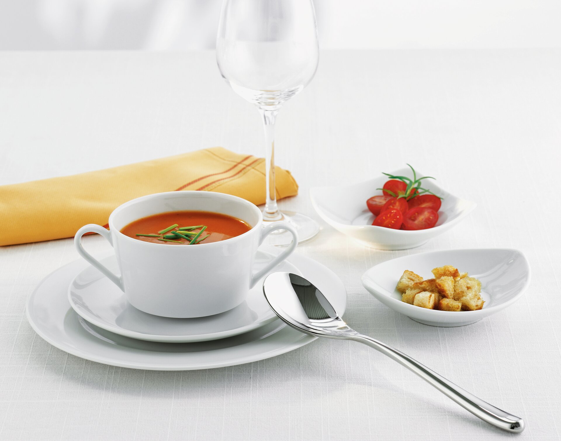 Klassische Eleganz � in einer klaren, zeitlosen Form. Der besondere Charme liegt in der Kombination aus runden und quadratischen Tellern und weich geschwungenen Hohlteilen. Ein anmutiger Purismus, der ganz unterschiedliche Anspr�che befriedigt.