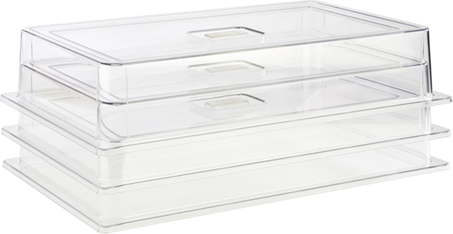 LxBxH in cm: 53,0x32,5x9,5Made in Germany.Glasklares Polycarbonat - sehr wiederstandsfähig, nahezu unzerbrechlich. Vielseitig einsetzbar - passend für GN1/1 Behälter/ Tabletts/ Körbe, etc. Gebrauchstemperatur bis ca. +120 °C. Stapelbar, bruchsicher, spülmaschinengeeignet. Materialstärke: 3 mm.