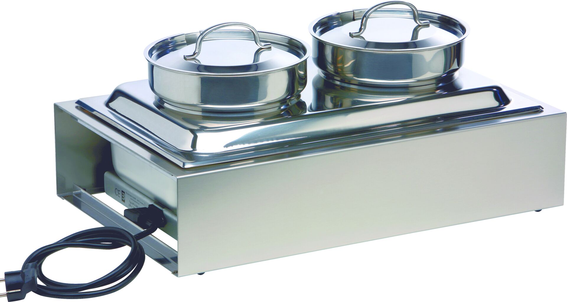 Element: SuppenstationAusführung: 3tlg.3-teilig. Buffetsystem Aufsatz mit 2 Suppentöpfen mit je 4 L Inhalt, inkl. Deckel. Art. 40001.A und Art. 40001.E
