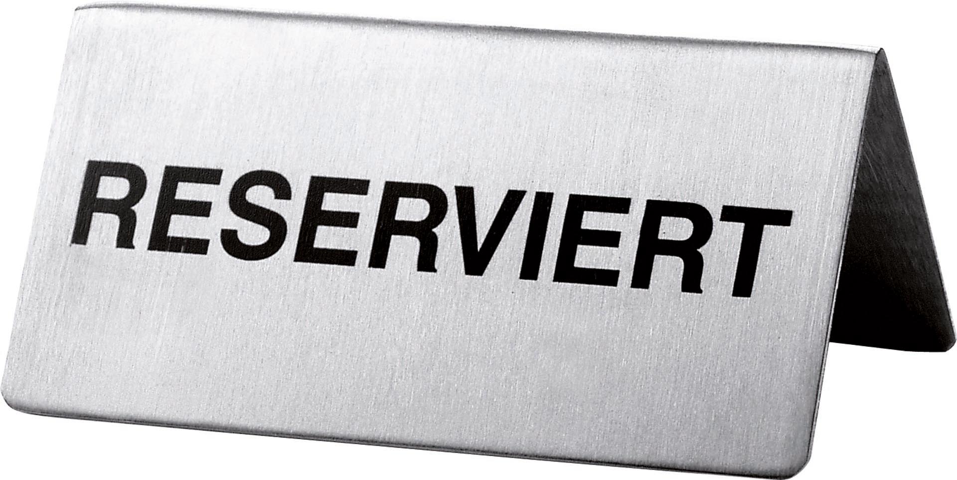 LxB in cm: 10x5Edelstahl 18/10. Beidseitig bedruckt in schwarzer Schrift "Reserviert".