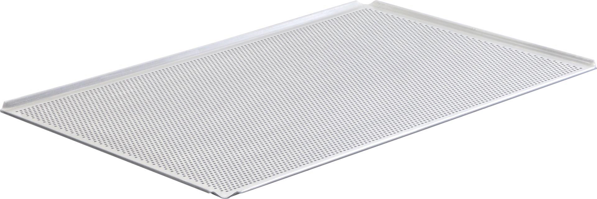 LxBxH in cm: 53,0x32,5x1,0GN-Größe: 1/1Ausführung: gelochtIdeal auch für Halbfertigerzeugnisse oder zum schnellen Aufbacken.Aluminium. Lochung: 3 mm. Materialstärke: 1,5 mm. 4 Seiten 45°. Profi Bäckerblech. Die Lochung verbessert die Heißluftzirkulation und beschleunigt die Backzeit um 2 bis 3 Minuten. Ideal auch für Halbfertigerzeugnisse oder zum schnellen Aufbacken.