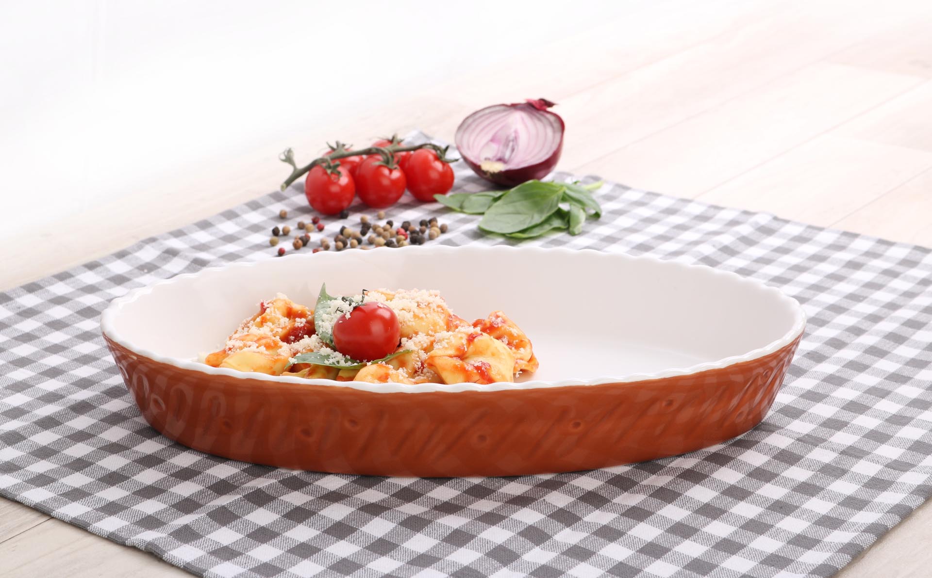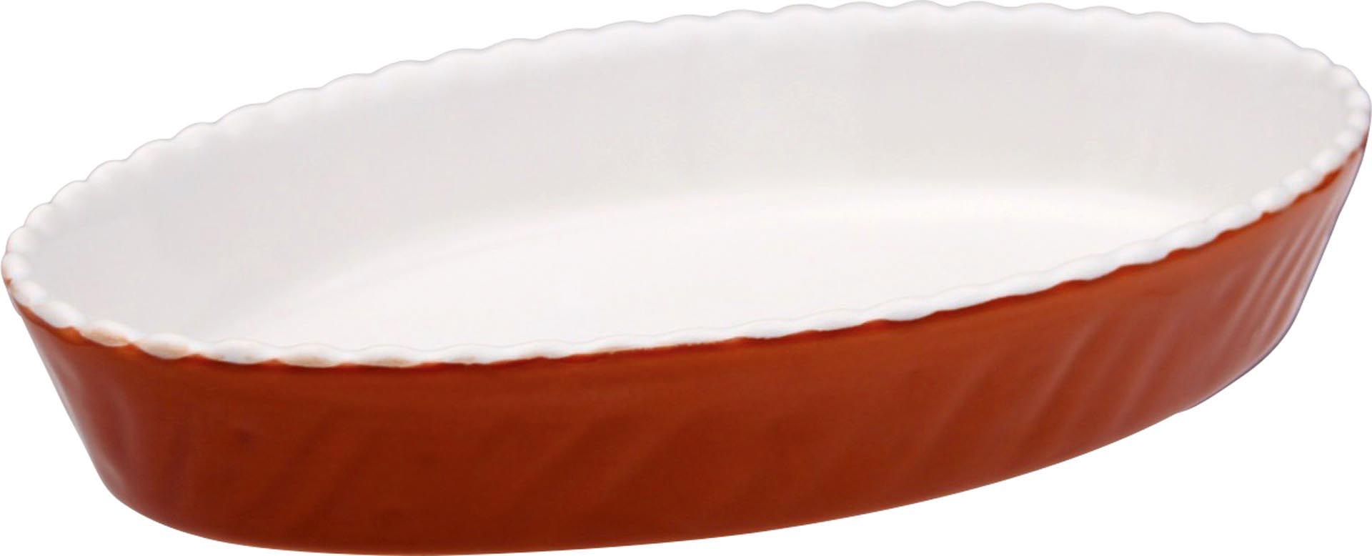 Dazu passende Braten-/Servierplatten finden Sie am Ende des Themas "Cook & Serve".Porzellan, außen ofenbraune Glasur, innen weiß, oval. Feuerfest bis 350°C.LxBxH in cm: 22,5x14,0x4,0Inhalt in L: 0,55