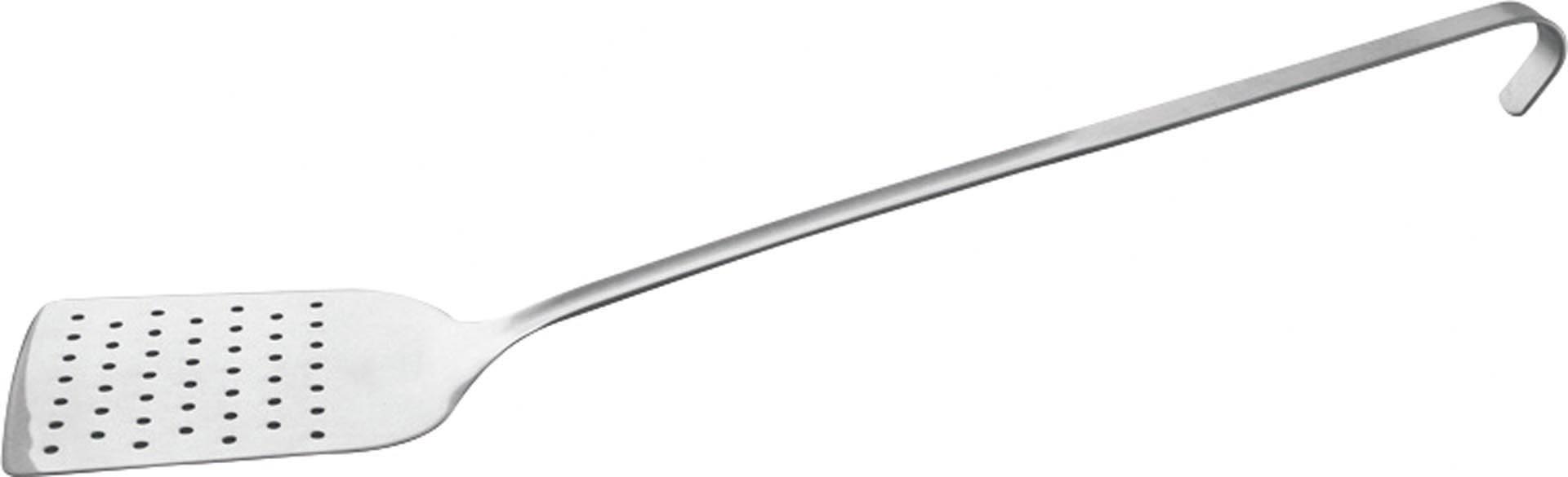 Edelstahl 18/10, matt poliert.Ausführung: gelochtBxL in cm: 12x14Stielllänge in cm: 38