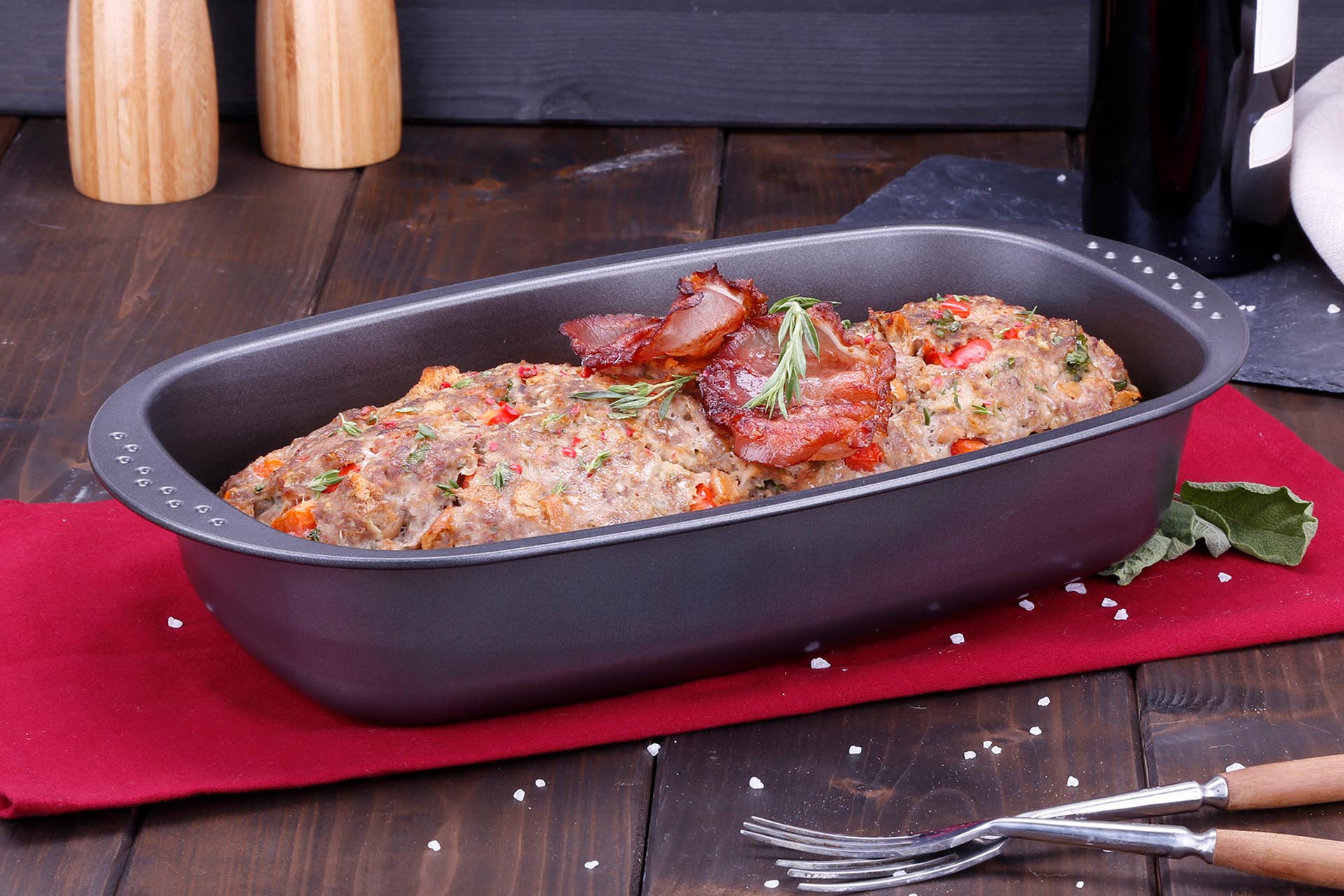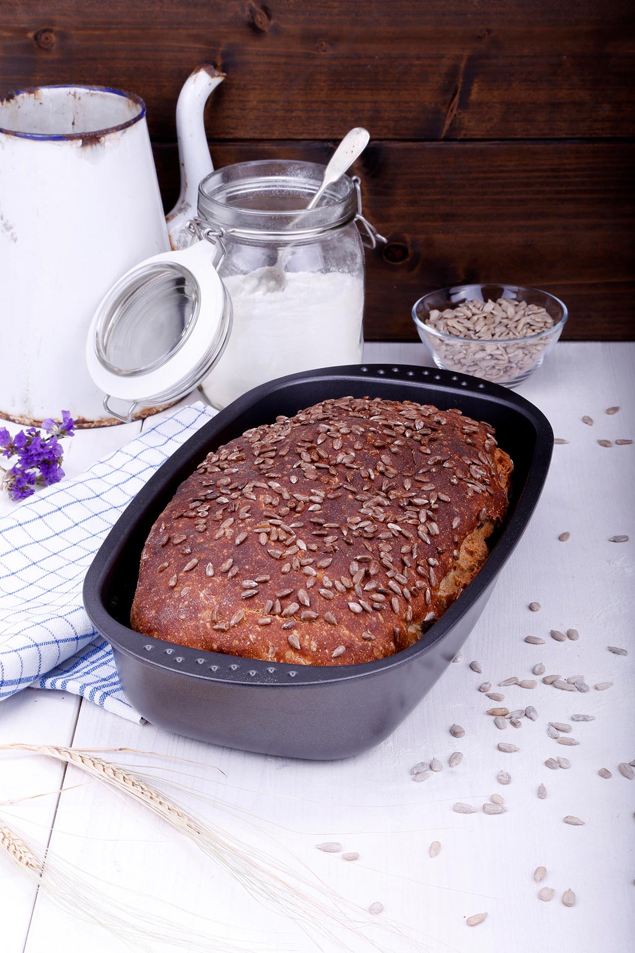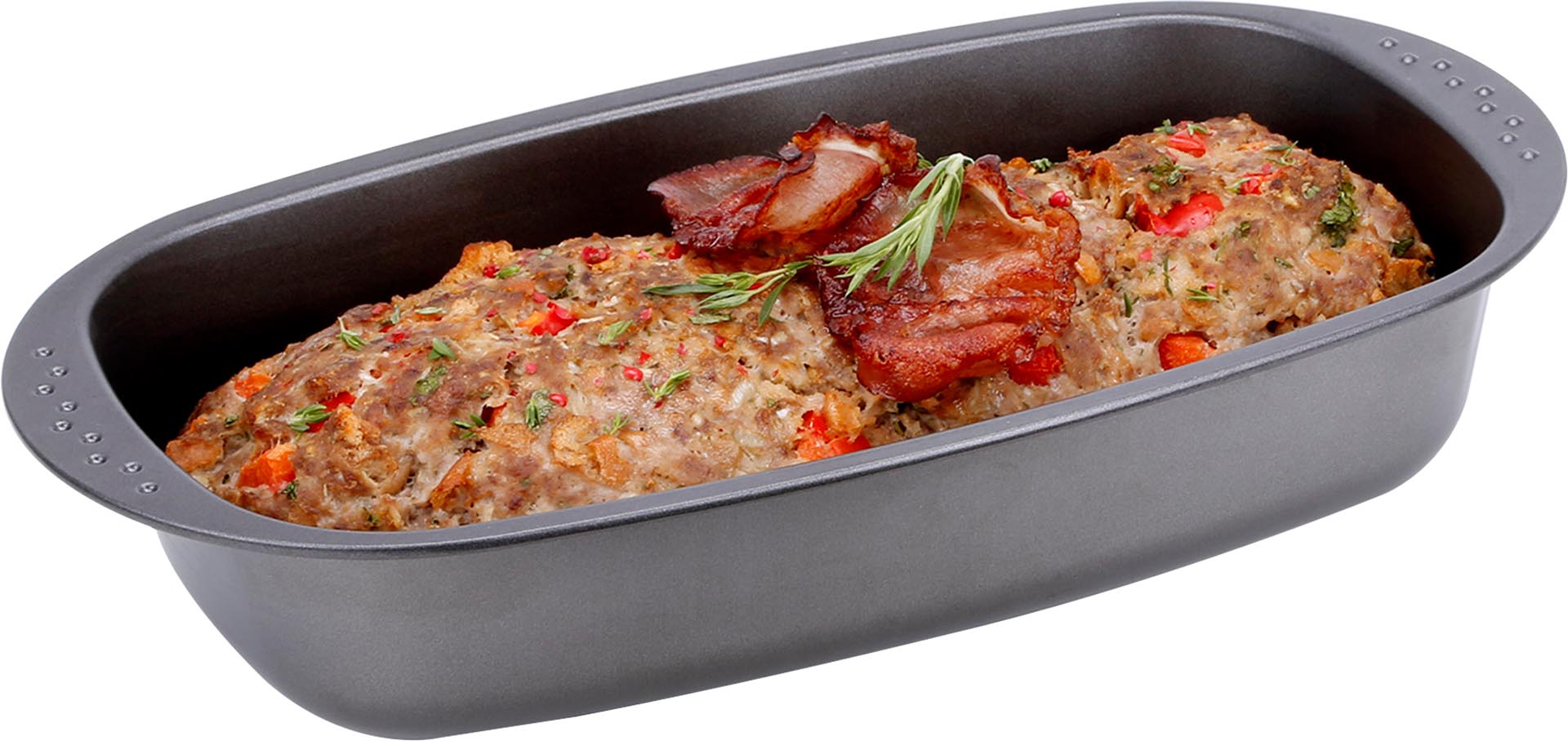 Made in Germany.ILAG Antihaftbeschichtung - Zweischicht-System, bis 250°C hitzebeständig. Auch zum Backen von z. B. Brot geeignet. Mit seitlichen Griffmulden und Arretierungspunkten, um eine zweite Form als Deckel verwenden zu können. Farbe: anthrazit-metallic.LxBxH in cm: 37,0x20,0x7,0
