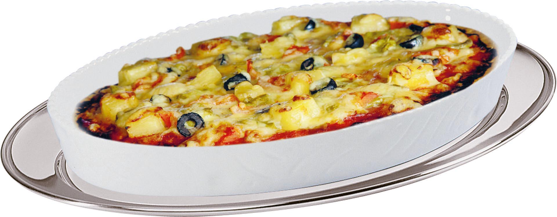 Edelstahl, poliert mit gerolltem Rand, Spülmaschinengeeignet.LxB in cm: 25,0x18,0