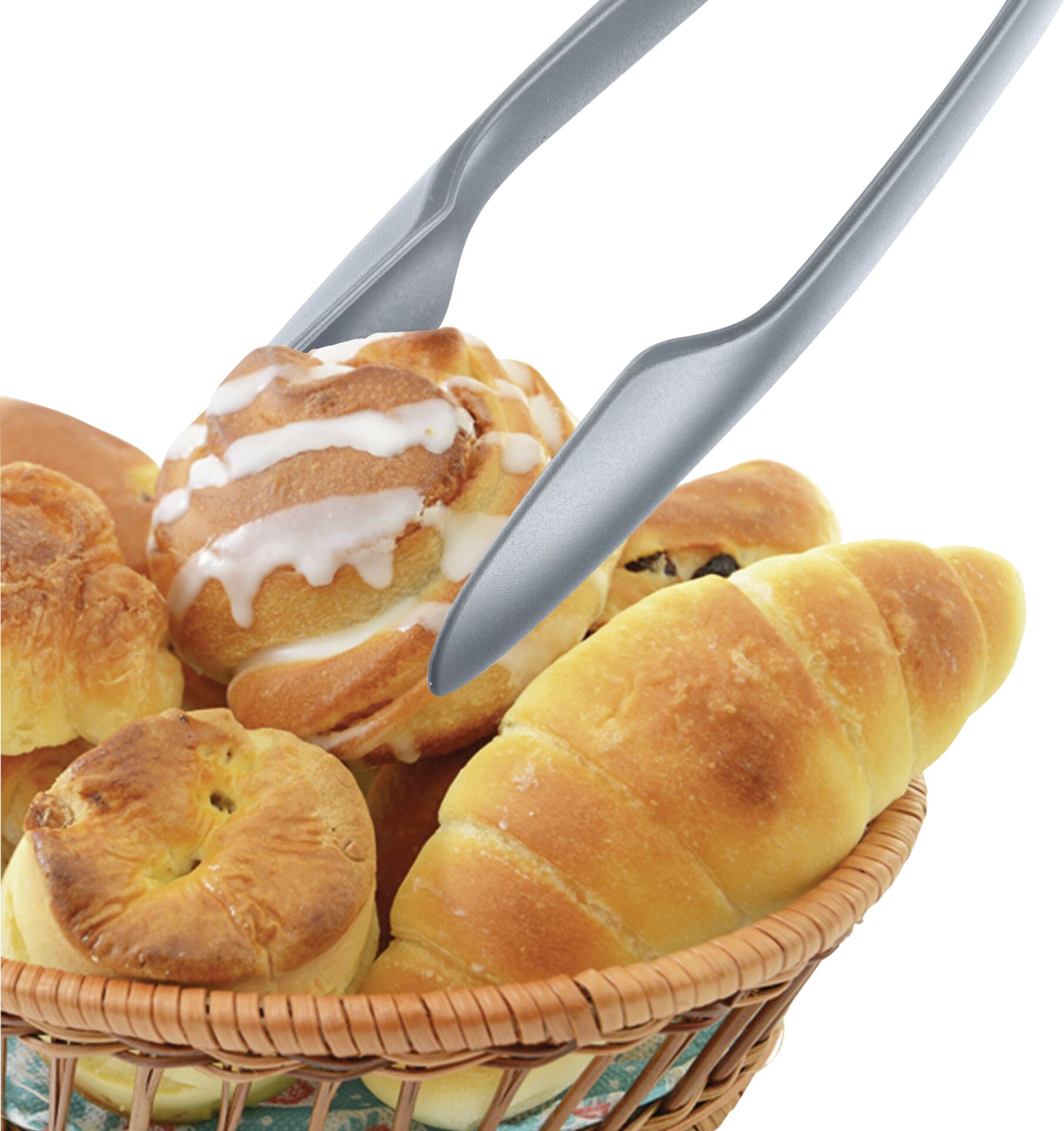 L in cm: 25PP, stabiles Zangenset (schwarz/grau), hält auch kleine, rutschige oder ölige Lebensmittel wie z.B. Oliven oder Eiswürfel sicher durch eine spezielle Ausformung, ineinander geklickt platzsparend aufbewahrt, spülmaschinengeeignet.