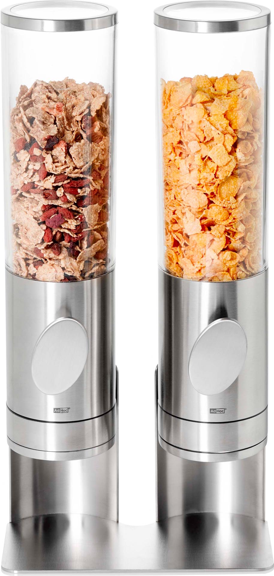 LxH in cm: 21x42,5Spender abnehmbar, krümelfreies, leichtes Portionieren, mit Aromaschutzkappe.Edelstahl/Acryl. Mit Ständer. Volumen je ca. 1,5 Liter. Geeignet für Cerealien, Reis, Getreide, Süßigkeiten, Nüsse uvm. Zur Verwendung am Tisch ist der Spender abnehmbar. Krümelfreies, leichtes Portionieren. Aromaschutzkappe schützt die Lebensmittel und sorgt für eine saubere Arbeitsfläche. Einfache Reinigung.