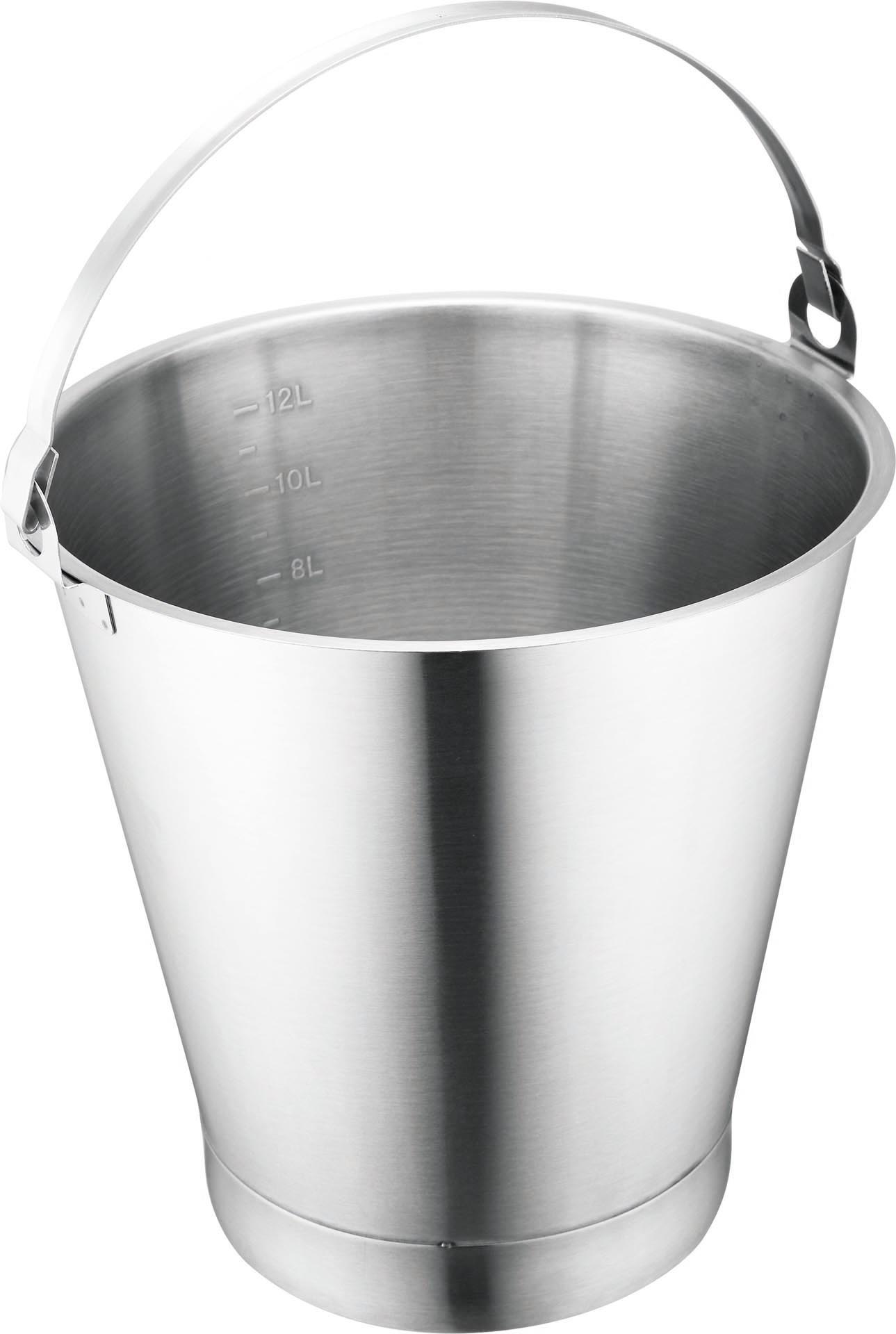 Edelstahl. Mit Skala und Bodenreifen.ØxH in cm: 30,5x32,0Inhalt in L: 12