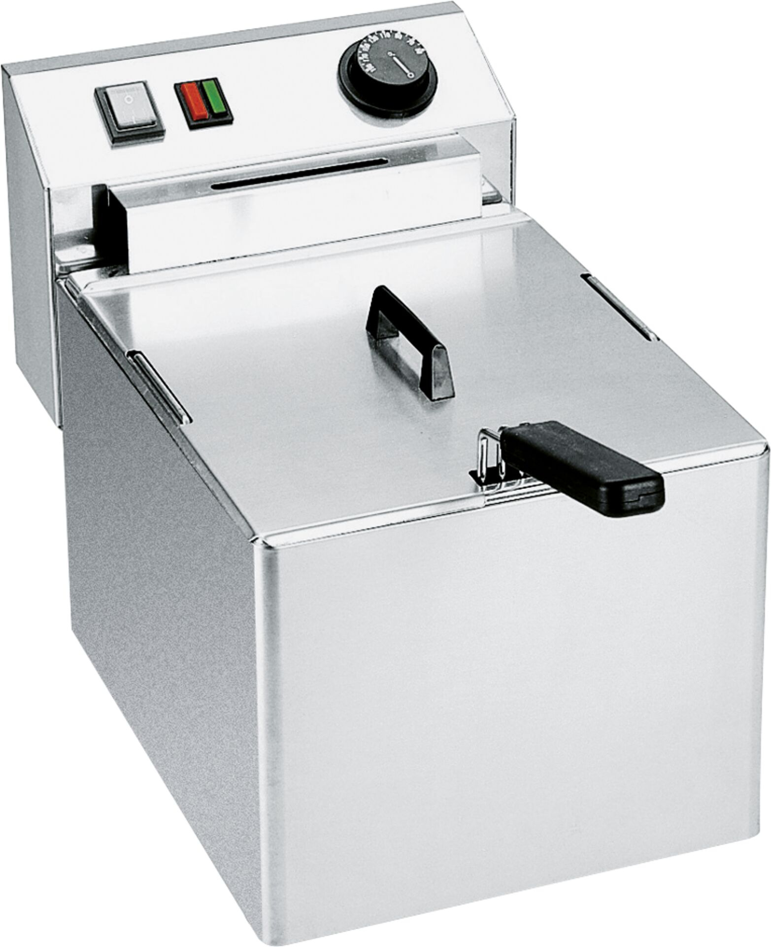BxTxH in cm: 27x42x30Inhalt in Liter: 8Anschlusswert: 230V/3kWGewicht in kg: 8Anschluss in V: 230Sicherheitsthermostat mit Reset-KnopfEdelstahl 18/10, rostfrei. Von 50° bis 190°C regelbar. Die Heizung und das Becken sind herausnehmbar. Inklusive Sicherheitsthermostat. Die Fett-Temperatur wird thermostatisch konstant gehalten, so dass ein Überhitzen des Fettes ausgeschlossen ist. Nur flüssiges Fett einfüllen!