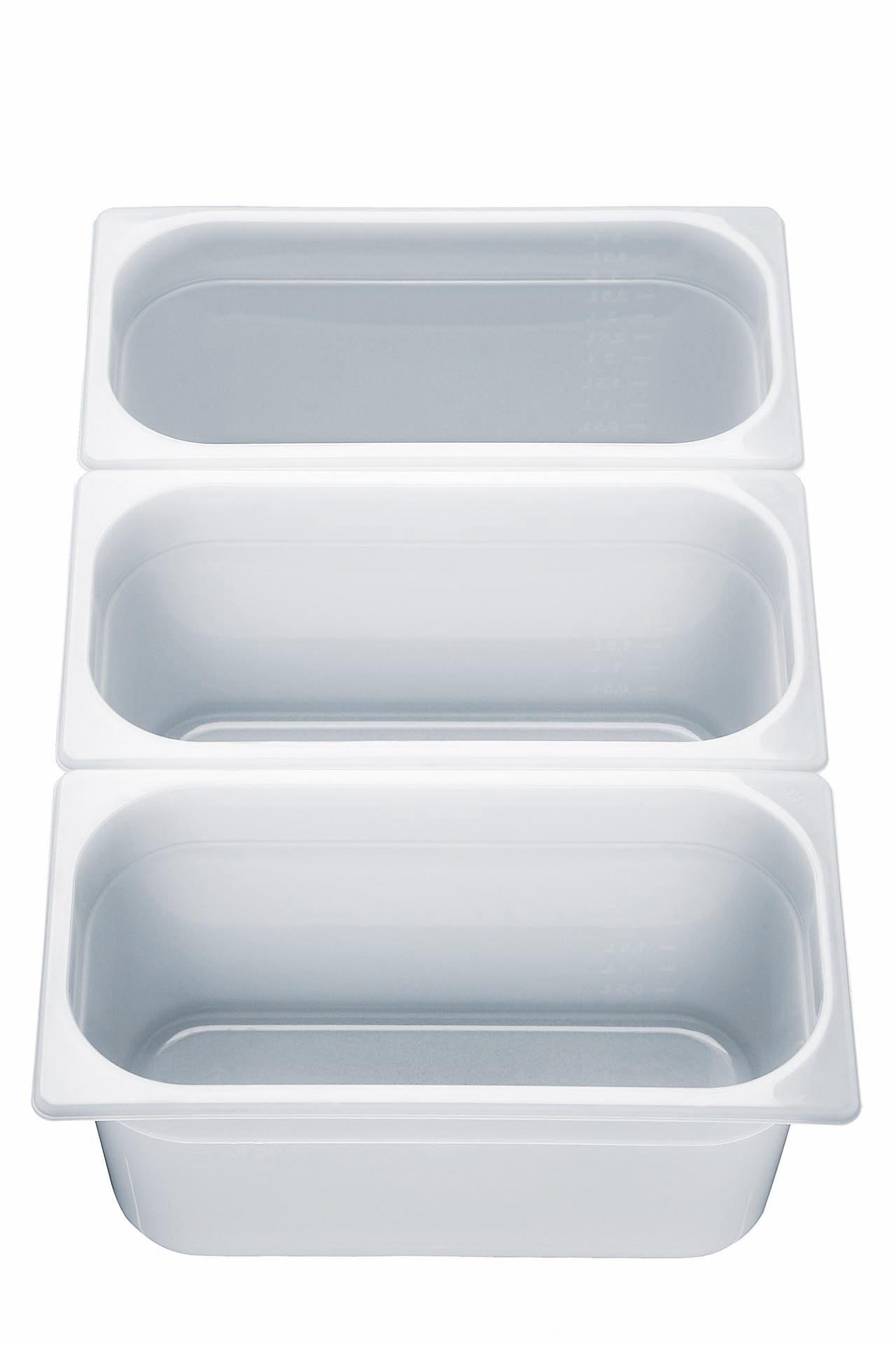 GN: 1/3Tiefe (mm): 100Inhalt (Liter): 4,5Polypropylen, einsetzbar von -40°C bis +70°C, spülmaschinen- und mikrowellengeeignet.GN: 1/3Tiefe (mm): 150Inhalt (Liter): 5,3Polypropylen, einsetzbar von -40°C bis +70°C, spülmaschinen- und mikrowellengeeignet.