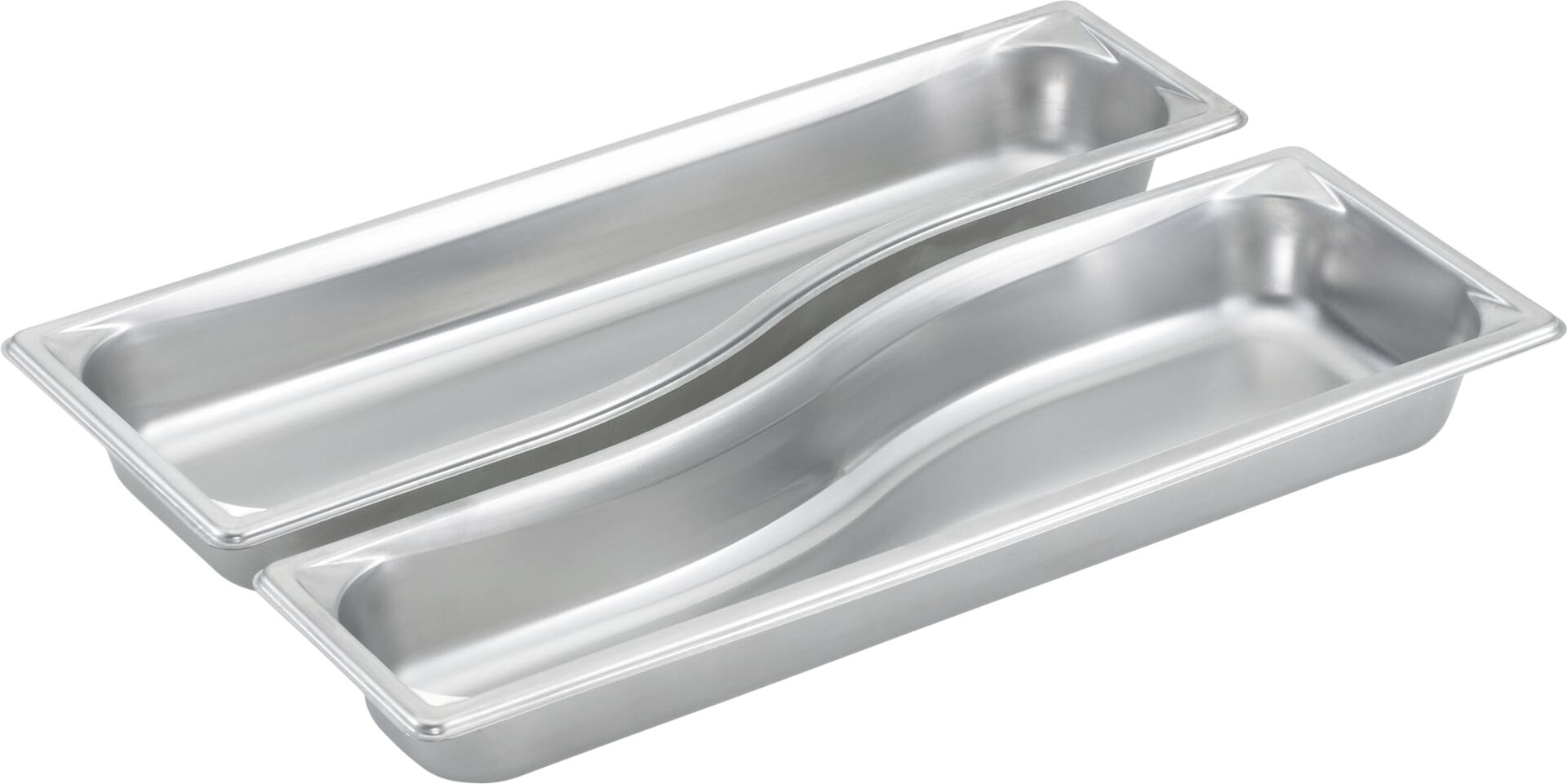 2x 1/3 GN außen + 1x 1/3 GN innen kombiniertBehälter in Wellenform. CNS Serie 300, Materialstärke 0,64 mm. Verstärkte Ränder und Ecken sorgen für mehr Stabilität und reduzieren den Temperaturverlust.GN: 1/2Tiefe in mm: 100Inhalt inL: 6,11/2 GN