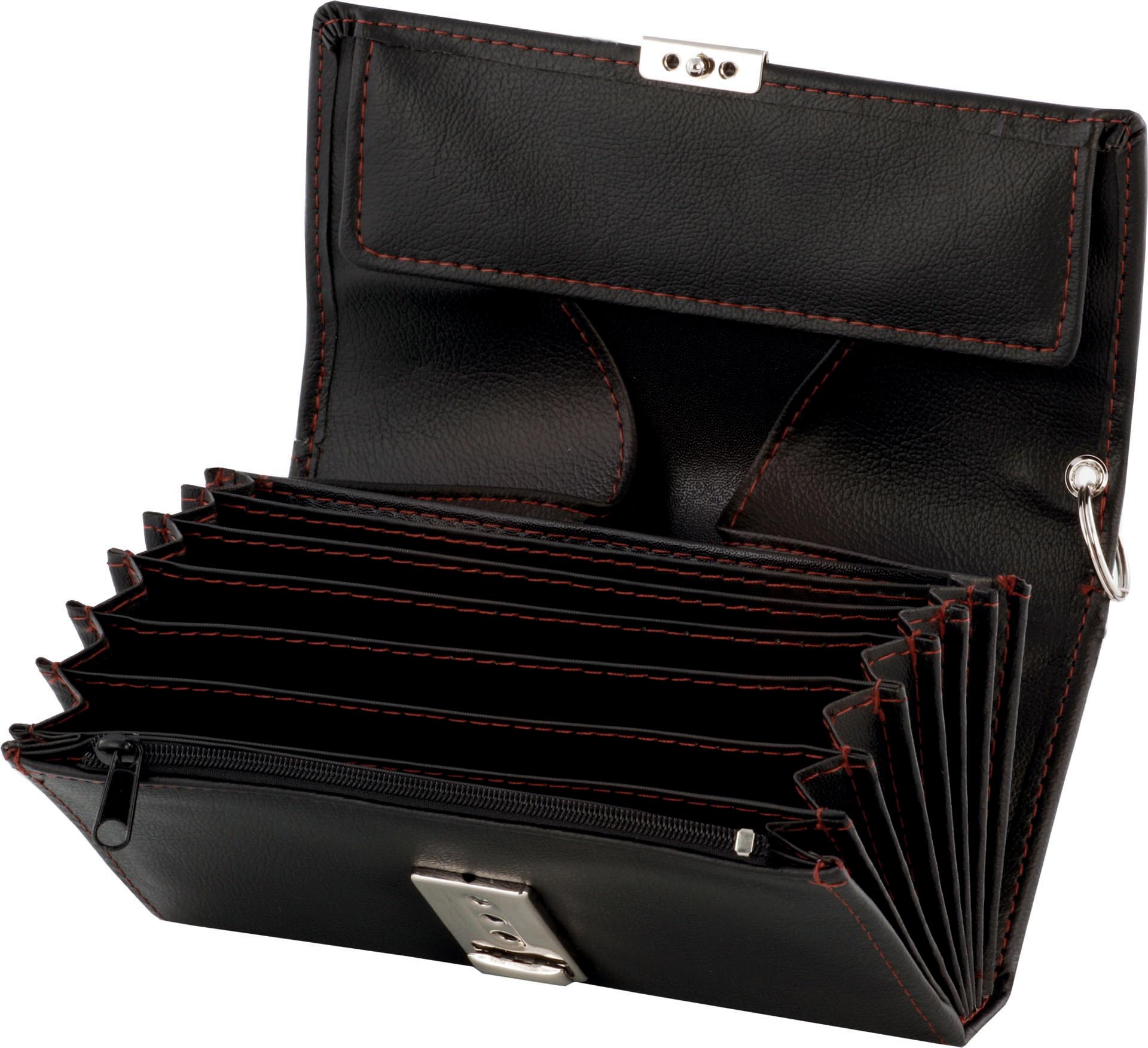 BxH in cm Revolvertasche: 14x21LxBxH in cm Kellnerbörse: 18x10x4Kunstleder/Feinsynthetik, schwarz, braun abgenäht. Kellnerbörse inkl. Schlüsselkette mit Karabiner, besteht aus: 1x Münzfach, 7x Scheinfach, 1x Reißverschlussfach, 1x Steckfach an der Rückseite. Revolvertasche bestehend aus 1x Fach für die Kellnerbörse und 1x Zusatzfach für Notizblock und Kugelschreiber.