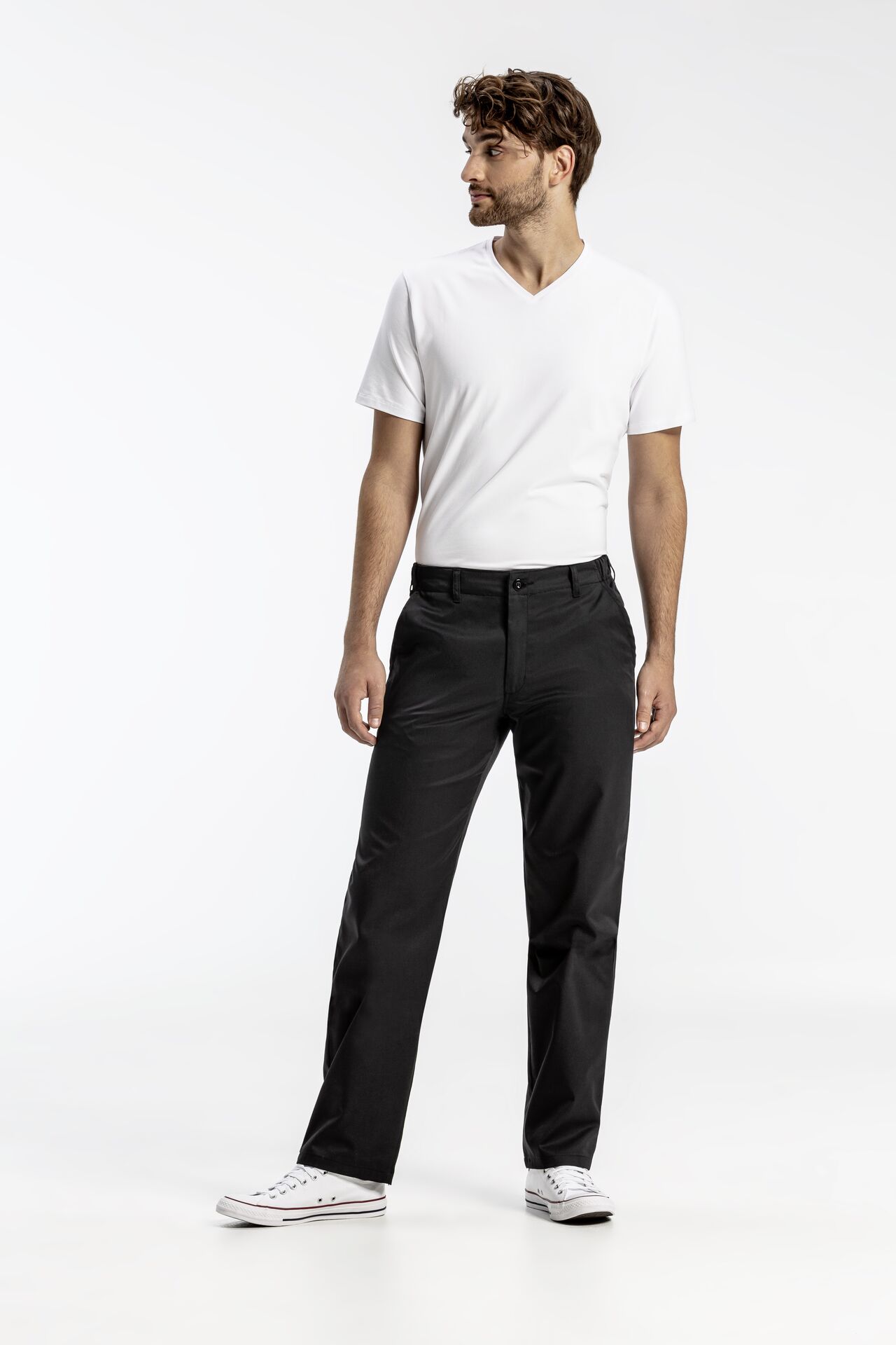 Sondergrößen auf Anfrage!Herren-Hose regular fit, seitlicher Gummibund, 2 Seitentaschen, 1 Gesäßtasche, Gürtelschlaufen, Schrittlänge 84 cm/ Gr. 50, 35% Baumwolle/ 65% Polyester, 210g/ m², waschbar bei 95 °C.Öko-Tex Produkt-ID: M1VLND9W5Größe: 46