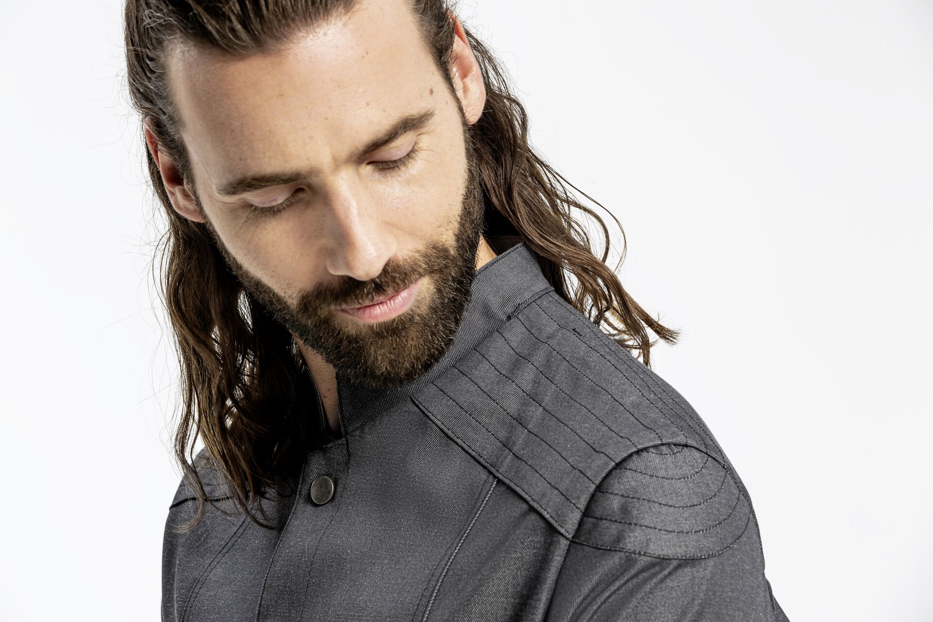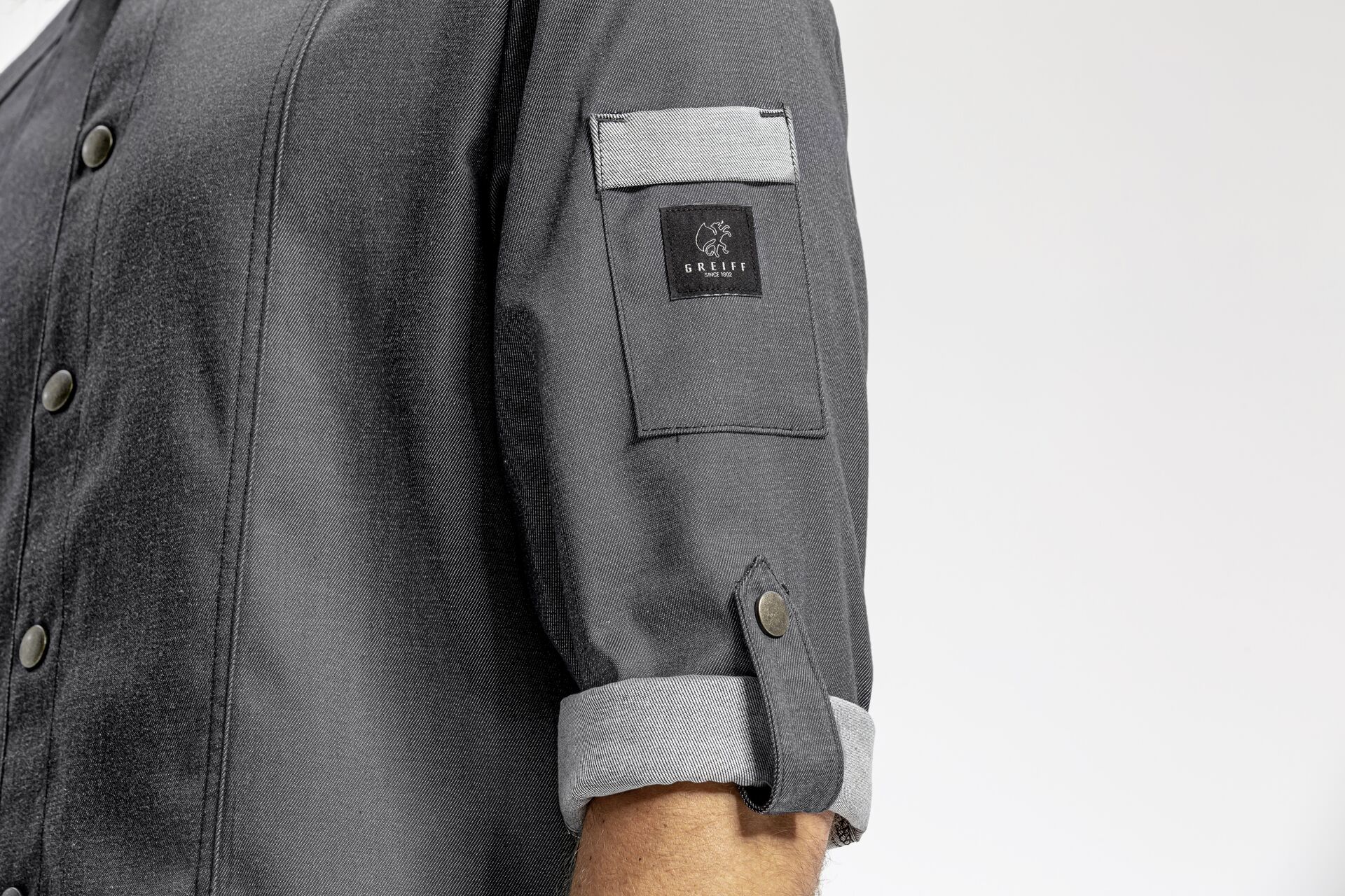 Kochjacke Herren Bikerstyle langarm anthrazit Gr. S
