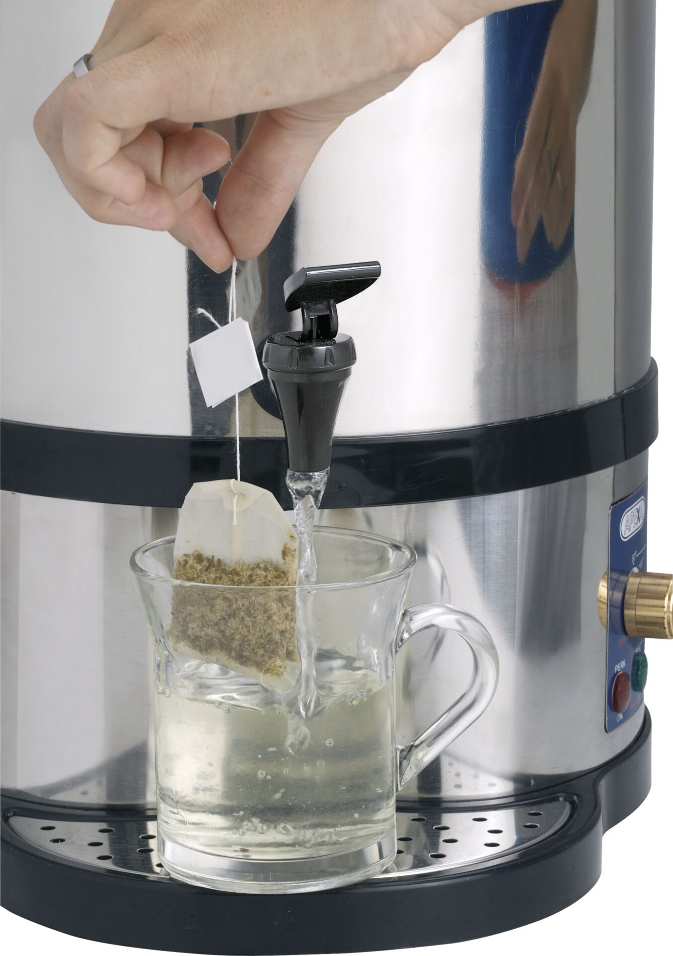 &OSlash;xH in cm: 27,0x61,0Inhalt in Liter: 20,0Anschlusswert: 230V/2 kWHeiße Getränke für jeden Anlass.Ideal zum Warmhalten von heißen Getränken. Integriertes Heizsystem, sehr bedienungsfreundlich, inkl. 3 Beschriftungen: Glühwein, Jagertee und Heißwasser. Stufenlose Temperaturregelung 30°C-90°C.