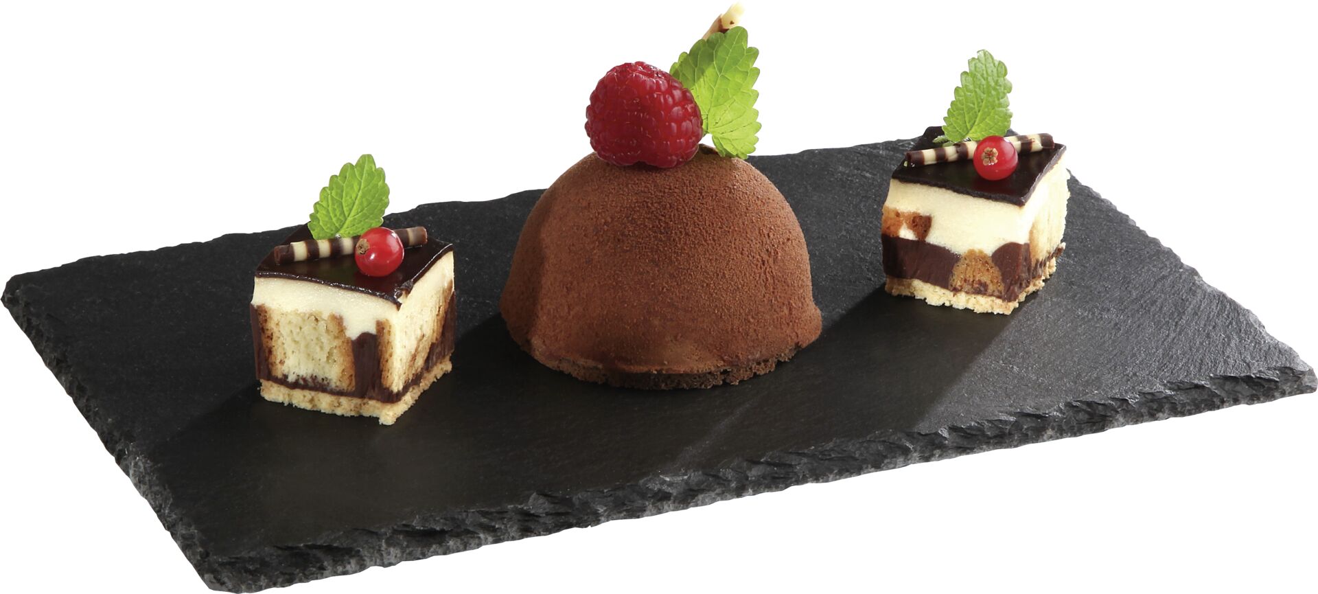 Naturschiefer. Mit Antirutsch-Füßchen. Versiegelt mit lebensmittelechtem Speziallack. Fett- und wasserdichte Oberfläche. Gebrochene Kante. Hervorragende Kältespeicherung durch Naturschiefer. Nicht spülmaschinengeeignet!Ausführung: 1/4 GNLxB in cm: 26,5x16,2