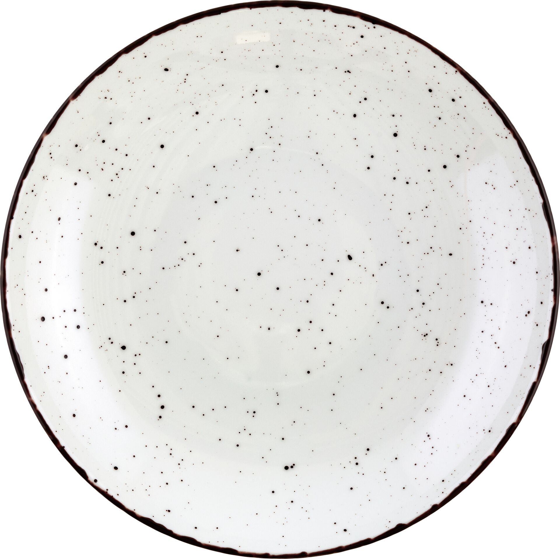 Porzellan. Grundfarbe weiß, Rand braun und Spiegel braun gesprenkelt. Mischsortierung. Spülmaschinengeeignet.Ausführung: Teller tief Coup-FormMaße/Inhalt: &OSlash; 26 cmFarbe: weiß