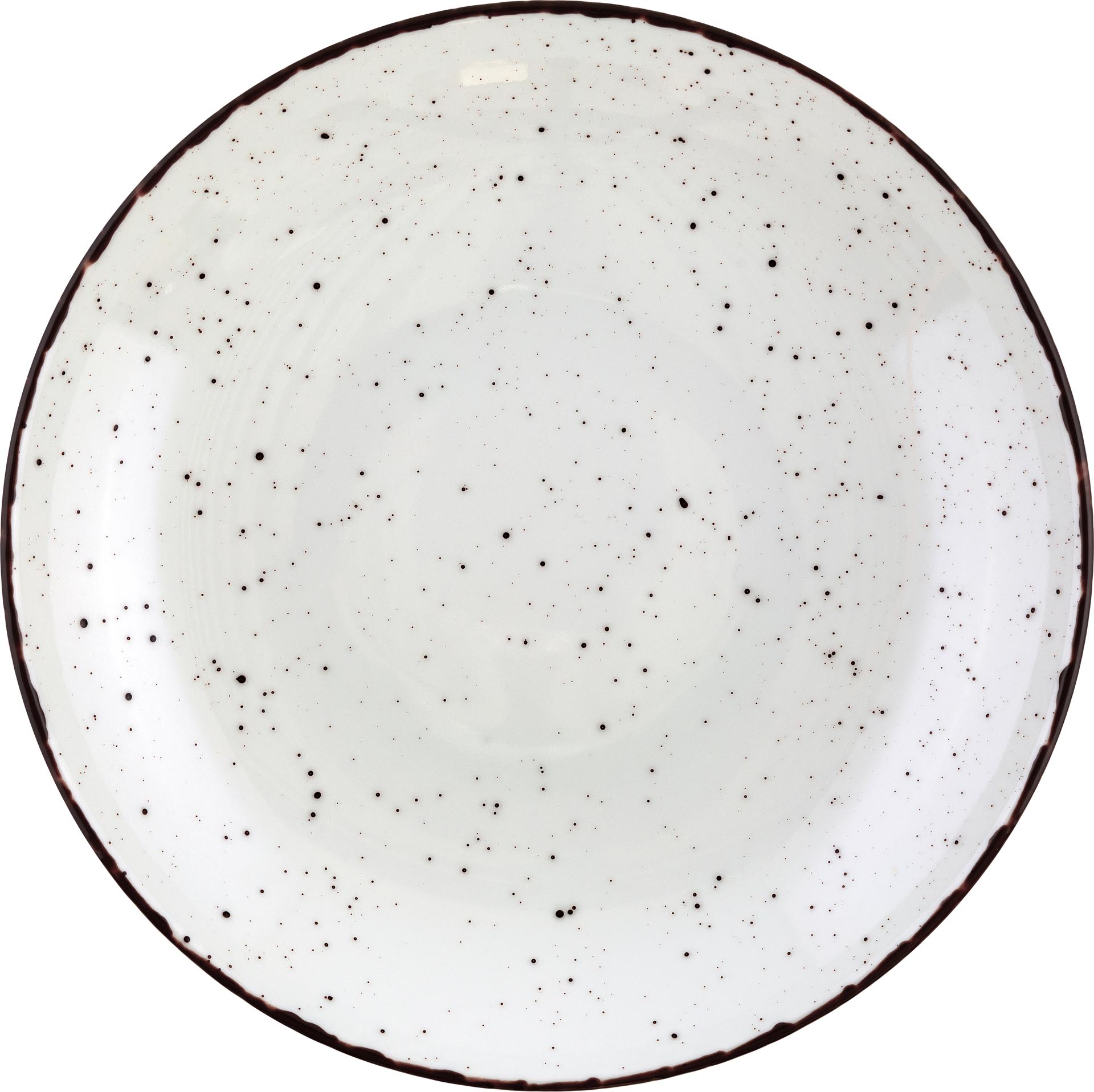Porzellan. Grundfarbe weiß, Rand braun und Spiegel braun gesprenkelt. Mischsortierung. Spülmaschinengeeignet.Ausführung: Teller tief Coup-FormMaße/Inhalt: Ø 26 cmFarbe: weiß