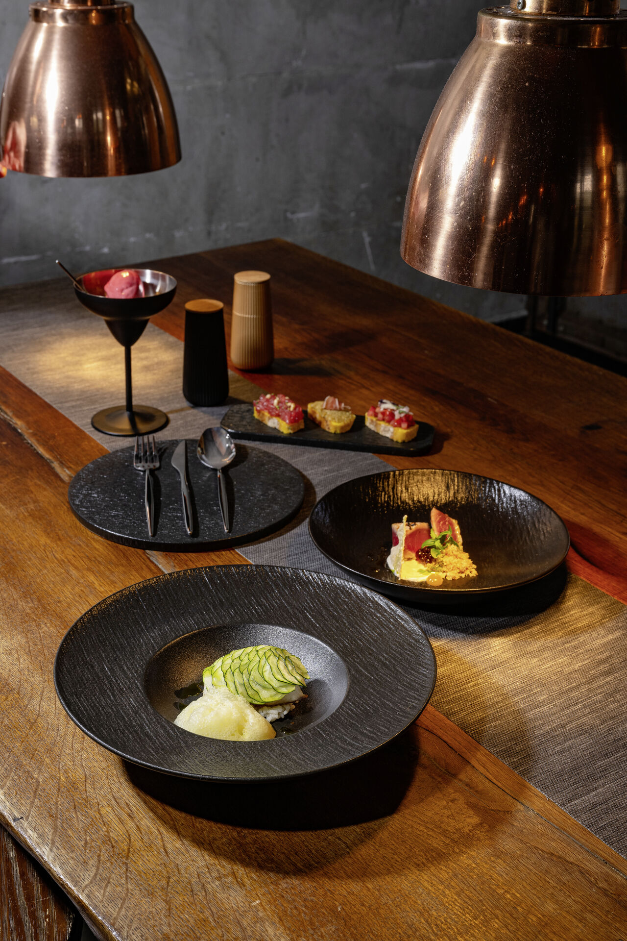 Die Porzellanserie Lavanit vereint Eleganz und Funktionalität in einer faszinierenden Ästhetik. Mit einer leicht strukturierten Oberfläche, die an die natürliche Schönheit von Lava erinnert, bringt diese Serie ein besonderes haptisches Erlebnis auf den gedeckten Tisch. Lavanit ist in klassischem Weiß undtiefem Schwarz erhältlich, wobei beide Farben perfekt miteinander kombinierbar sind.Porzellan, schwarz. Mischsortierung. Spülmaschinengeeignet.Ausführung: Platte rechteckigMaße/Inhalt: 30x10x1,1cm