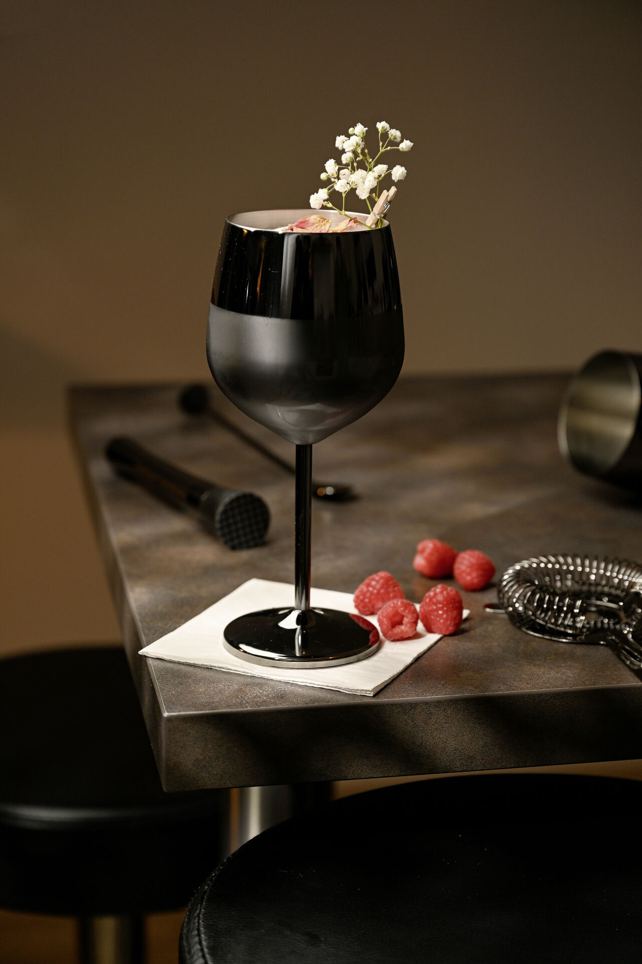 Unsere Cocktailgläser aus hochwertigem Edelstahl beeindrucken mit einem modernenDesign. Sie sind in drei eleganten Ausführungen erhältlich: matt in Schwarz oderGold sowie glänzend in Anthrazit. Dank ihrer Vielseitigkeit eignen sie sich perfekt für Cocktails, kreative Desserts oder außergewöhnliche Präsentationen. Material Edelstahl, nicht spülmaschinengeeignet.Ausführung: Weinglas, anthrazitInhalt in ml: 540&OSlash;xH in cm: 9,2x22