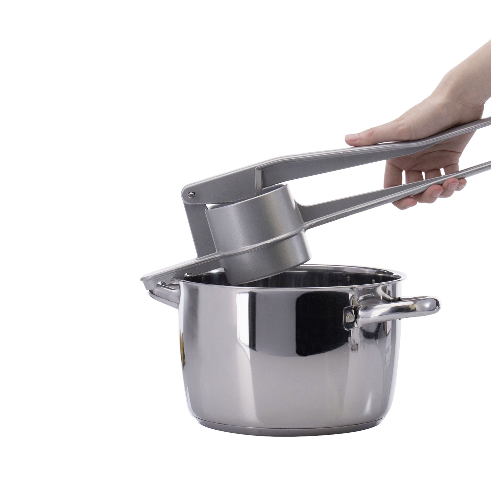 LxBxH in cm: 41,0x9,3x11,0Aluminium beschichtet, ideal für die Zubereitung von Kartoffelpüree, Obstsäften, Spaghetti-Eis etc. der Griff ist unten abgeflacht und bietet mit den drei Auflagerasten vorne sicheren Halt auf verschieden großenTöpfen, spülmaschinengeeignet.