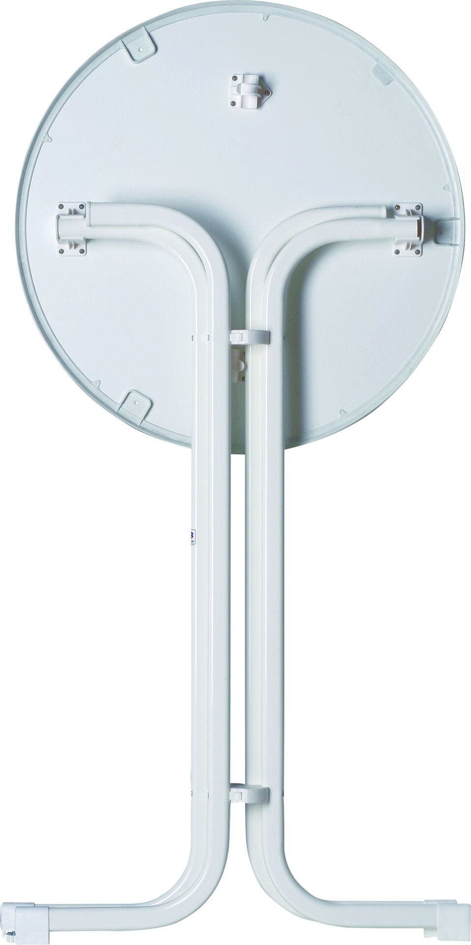 In der Aufbewahrung sehr platzsparendTischplatte aus MDF. Gestell aus Stahlrohr &OSlash; 28x1,2 mm mit Pulverbeschichtung.Farbe: weiß&OSlash;xH in cm: 70x110