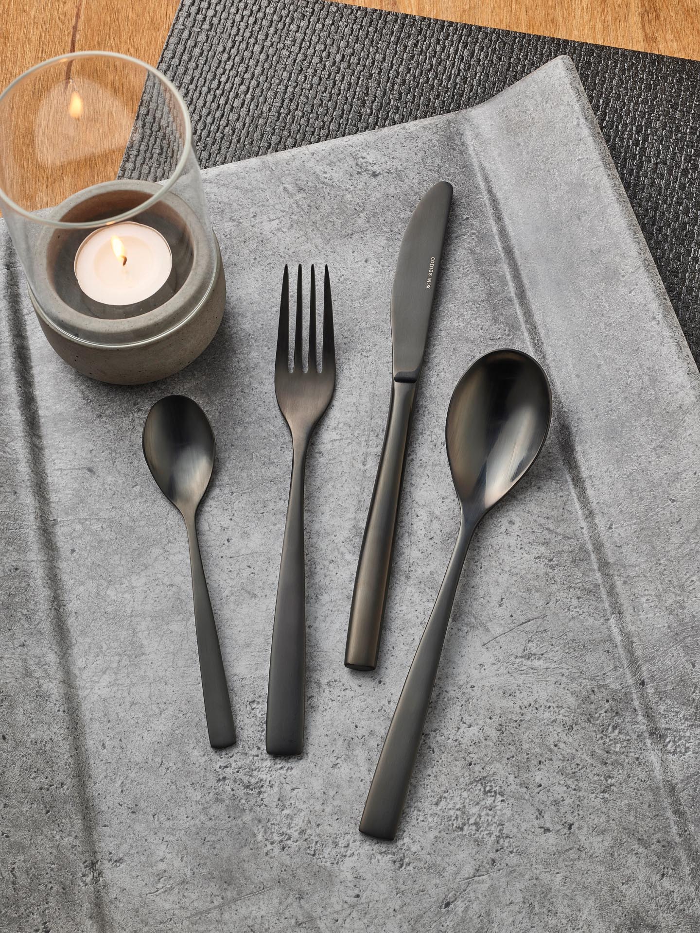 Chromstahl 18/0, rostfrei, mattes Design, 3,0 mm stark, PVD beschichtet, Die Farben schwarz, kupfer u. champagner sind perfekt miteinander kombinierbar. Bitte Pflegehinweis beachten. Dieser befindet sich auf der Verpackung.Ausführung: TafelgabelLänge in cm: 20