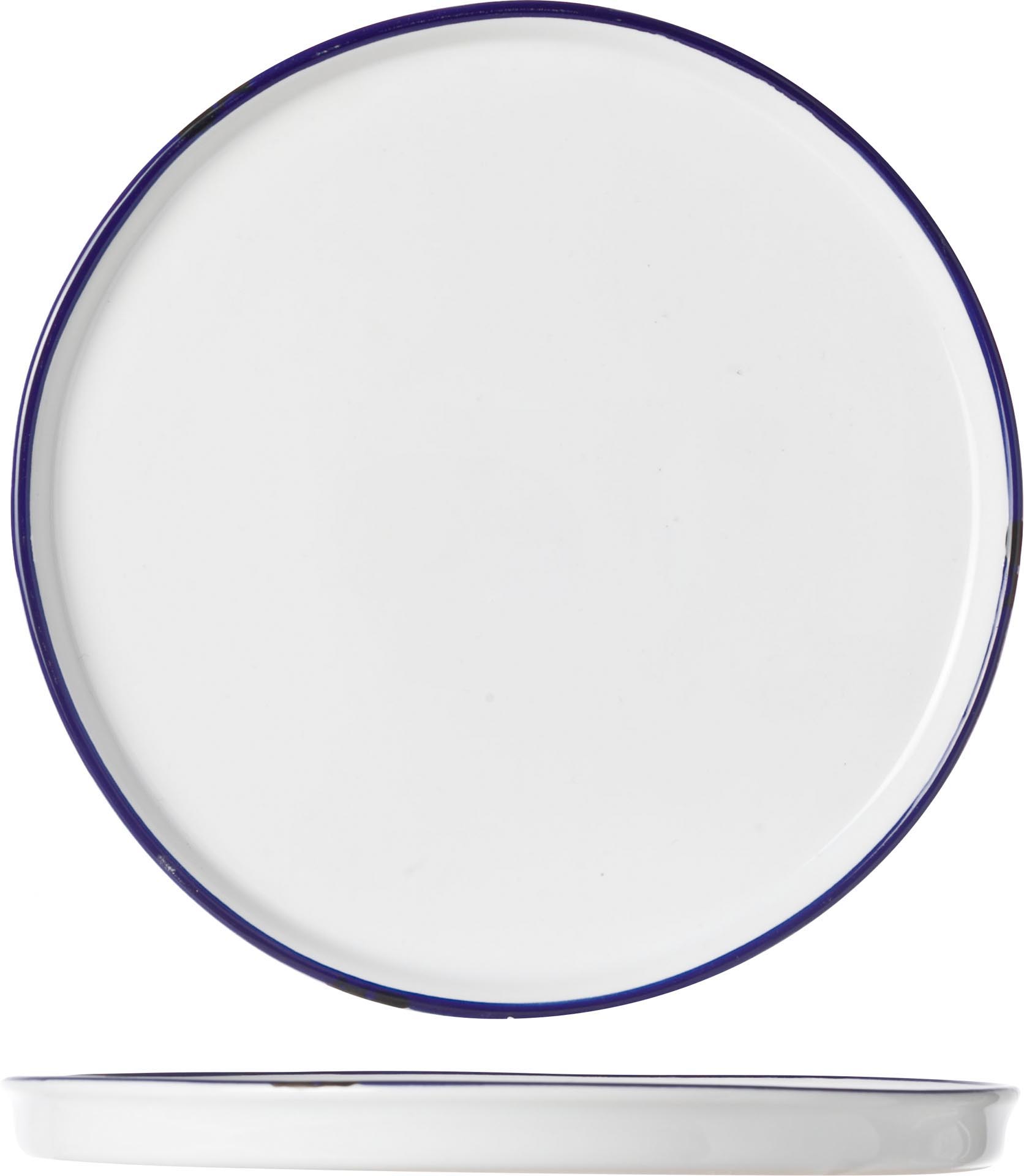 Wie zu Omas ZeitenSteinzeug im Vintage-Look, weiß mit blauem Rand und optisch abgeschlagenen Ecken und Kanten in schwarz. Spülmaschinengeeignet.Ausführung: Teller flachMaße/Inhalt: Ø 26,5 cm