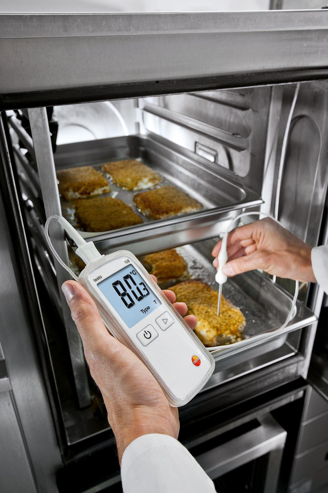 Wasserdichtes (IP67) Temperaturmessgerät mit Fühler. HACCP und EN 13485 konform. Messbereich -50° bis +300°C. Durch Softcase vor Wasser, Verschmutzung und Stoßschäden geschützt. Einfache Bedienung und Handhabung. Schnelles und präzises Messen. Großes Display. Kalibrier-Protokoll. Inkl. 3 x AAA Batterien.