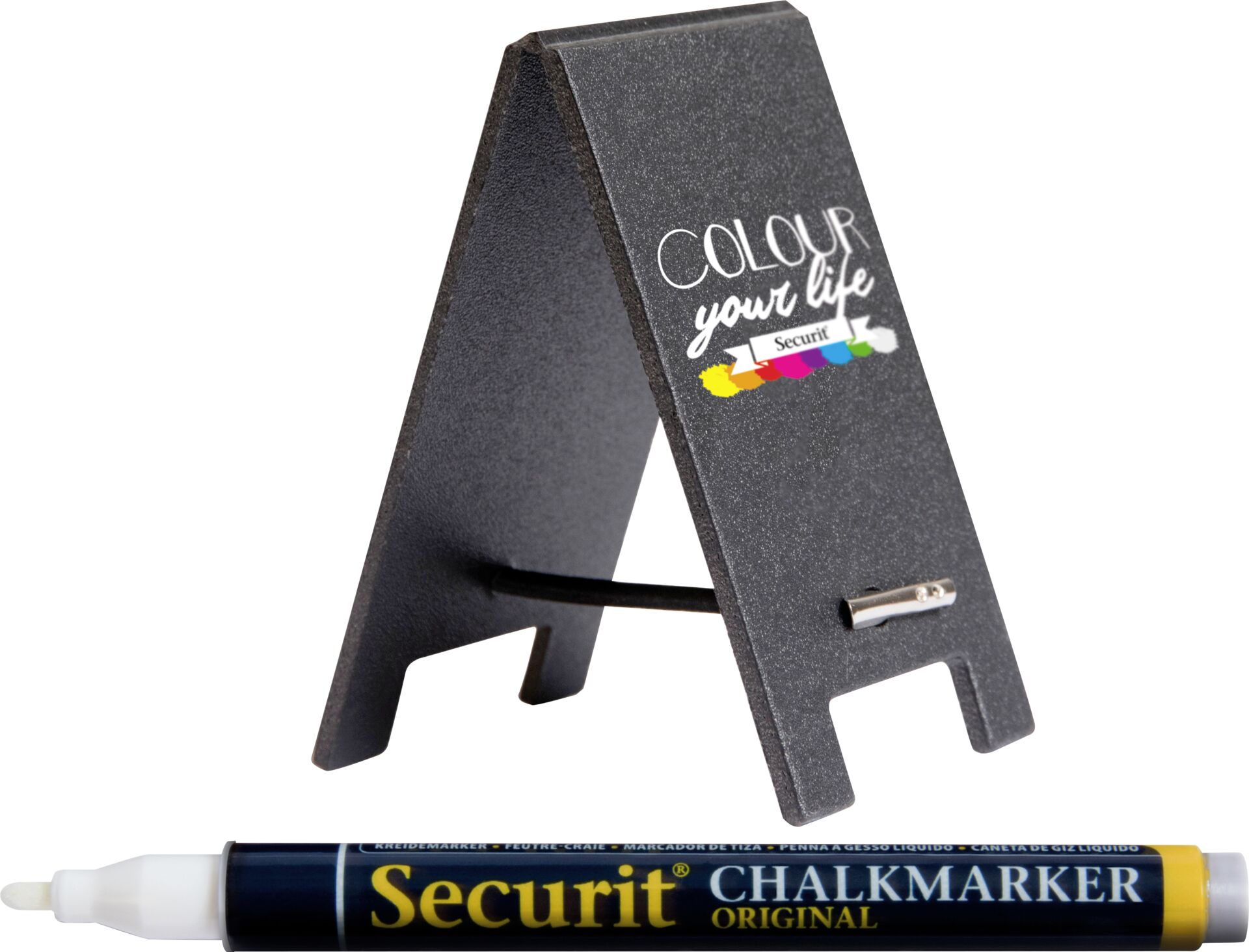 BxH in cm: 5x8,5Set besteht aus 5 Tafeln in schwarz, 1 Kreidemarker weiß, Stärke1-2mm und 5 Gummis zum Befestigen der beiden Seiten. Beschriftung auch mit anderen Kreidemarkern aus unserem Katalog möglich.