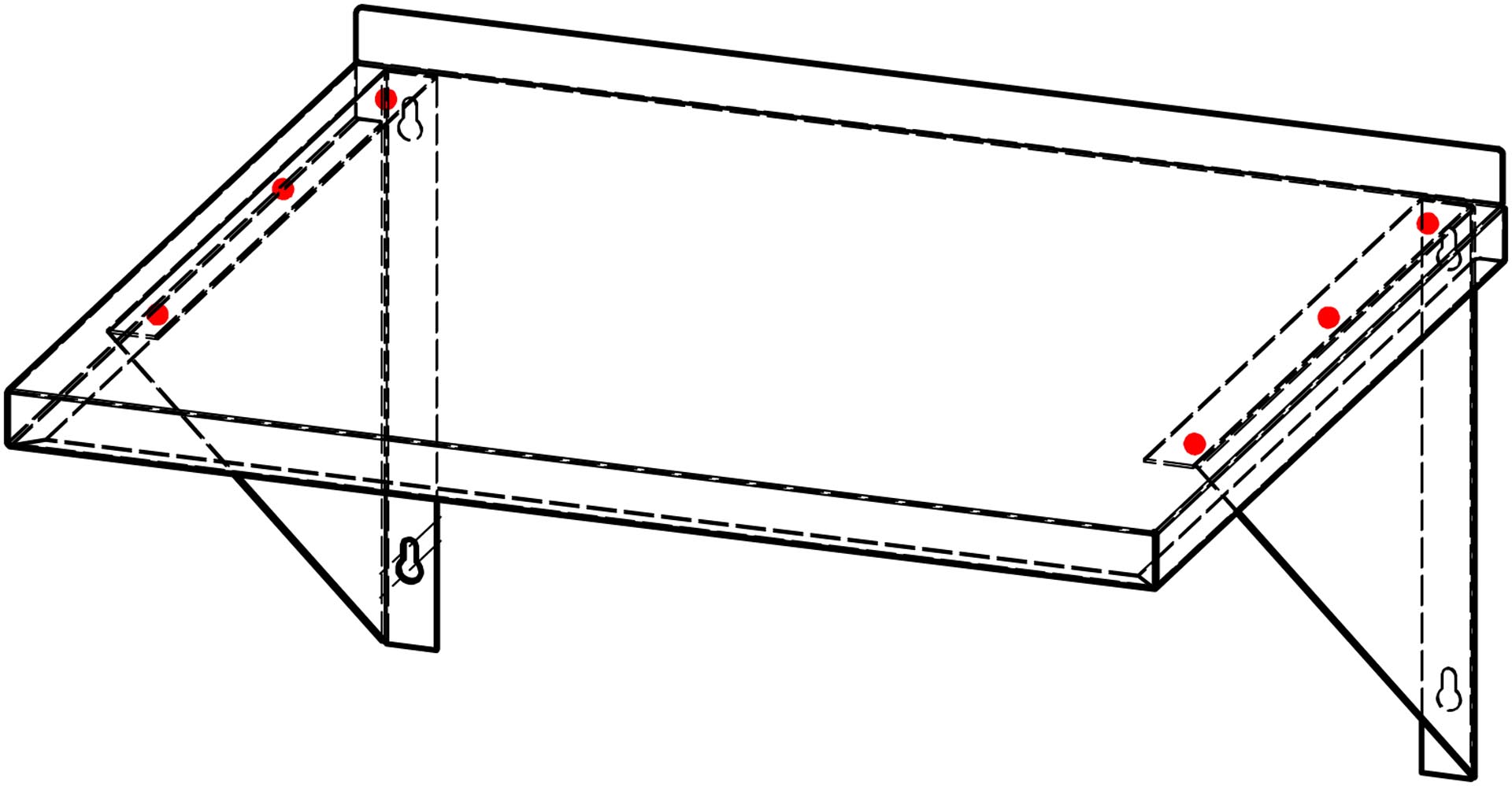 BxT in cm: 60x50Edelstahl 18/10. Winkelkonsole mit Lochbohrungen für Wandmontage, hinten aufgekantet. Tragkraft bis ca. 45 kg.