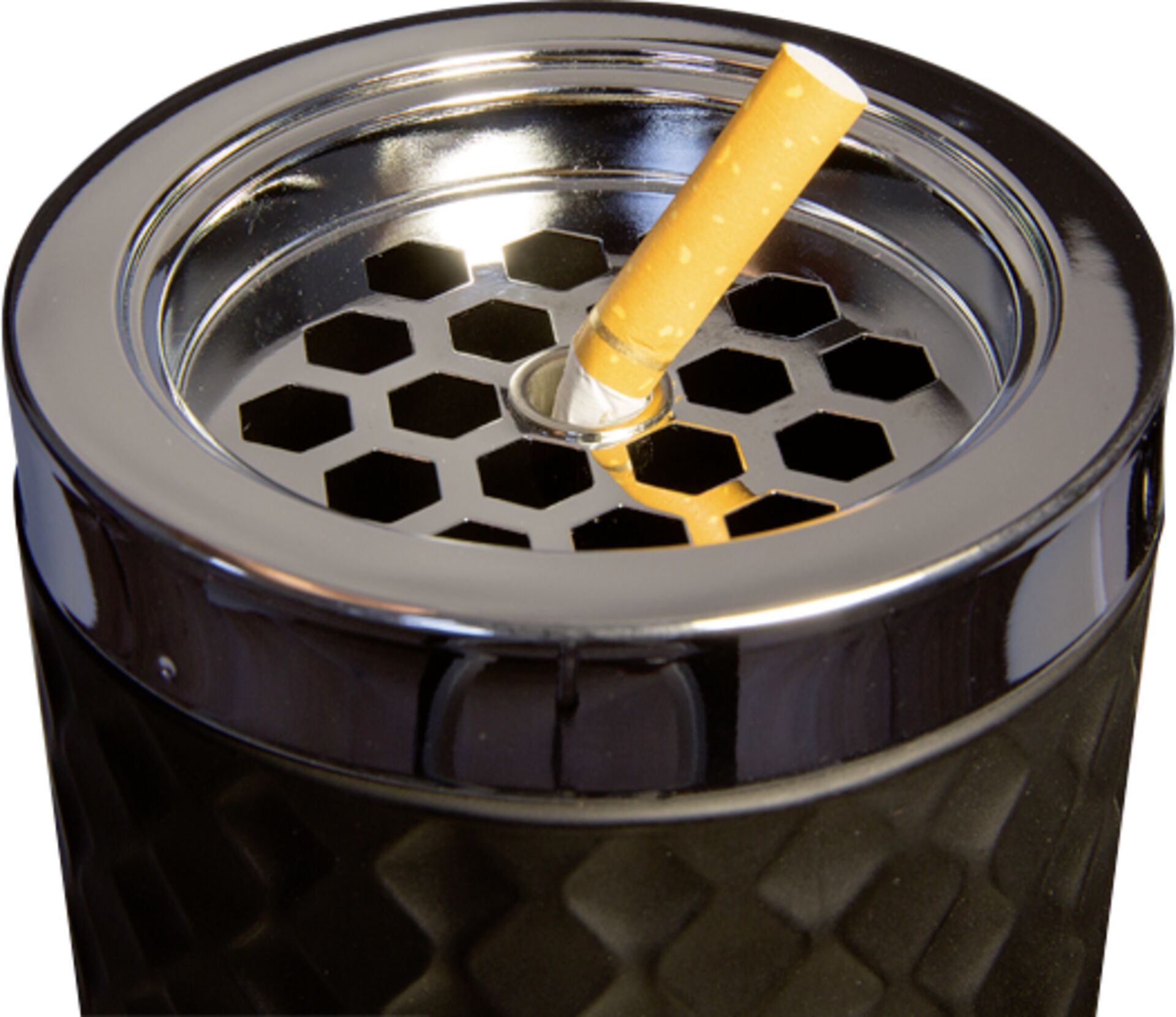 &OSlash;xH in cm: 9,5x8,0Metall verchromt, Glas gefrostet, mit Bajonettverschluss, sicheres Ausdrücken der Glut, stapelbar. Farbe: schwarz.
