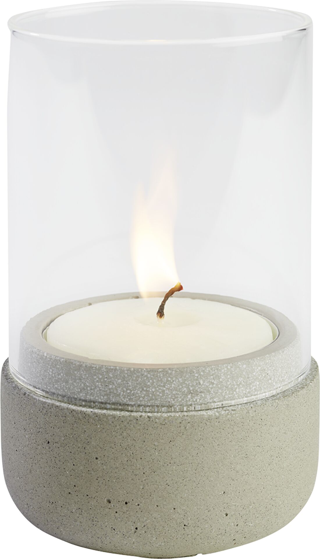 Fassung aus Beton mit möbelschonender Filzunterseite. Klares Windlicht-Glas. MitTeelichtern bestückbar. Nicht spülmaschinengeeignet.&OSlash;xH in cm: 7,5x13,0Ausführung: 1er Set