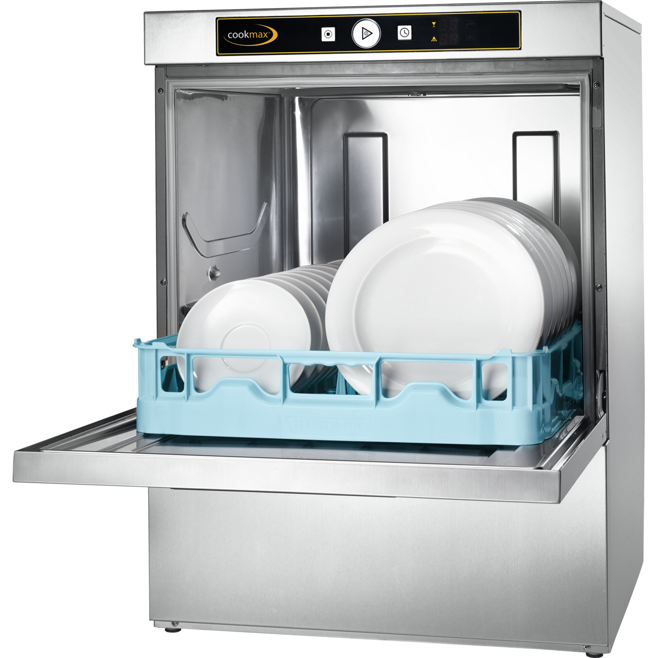 > Einschubhöhe max. 425 mm > Multiphasing: Maschinenkonfiguration der Spannungsversorgung vor Ort möglich (400 V / 230 V) > Hygienesicherheit durch Thermostopp-Funktion > Korbgröße: 500 x 500 mm > Ausführung in Edelstahl > inkl. 1 Tellerkorb und 1 Besteckbox > 2,0 - 2,3 l Wasserverbrauch / Zyklus > doppelwandiges Gehäuse > isolierte, doppelwandige Tür > elektronische Steuerung, 1-Knopf Bedienung mit farbcodierter Statusanzeige, eingebauter Reinigerdosierer > eingebauter Glanztrocknerdosierer > Spülzyklen: 60 / 120 / 180 Sekunden > Besteckprogramm > Flaschenspülprogramm > Gläserspülprogramm > Hygieneprogramm > Tankinhalt: 10 l > Energieaufnahme im Standby-Betrieb: 0,18 kWh > Tankabdecksieb mit integriertem Schmutzfangsieb > höhenverstellbar: von 825 auf 865 mm > Wasch- / Klarspültemperatur: 60°C / 82°C