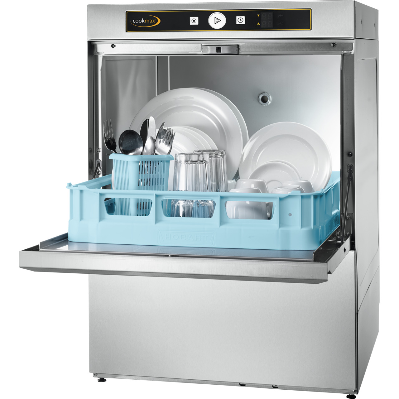 > Einschubhöhe max. 356 mm > Multiphasing: Maschinenkonfigurationder Spannungsversorgung vor Ortmöglich (400 V / 230 V) > Hygienesicherheit durchThermostopp-Funktion > Korbgröße: 500 x 500 mm > Ausführung in Edelstahl > inkl. 1 Tellerkorb, 1 Universalkorb 500 x 500 mm,1 Besteckköcher und 2 kg Regeneriersalz > 2,0 l Wasserverbrauch / Zyklus bei 3 bar > isolierte, doppelwandige Tür > elektronische Steuerung 1-Knopf Bedienung mitfarbcodierter Statusanzeige,eingebauter Reinigerdosierer > eingebauter Glanztrocknerdosierer > Spülzyklen: 60 / 120 / 180 sec. > Hygieneprogramm > Tankinhalt: 25 l > höhenverstellbar von 820 auf 860 mm > Wasch- / Klarspültemperatur: ca. 60°C / ca. 82°CEnergieaufnahme im Standby- Betrieb:0,45 kW/h > einsetzbar nach Einschalten und Befüllen:je nach Wassertemperatur ca. 15-25 min. > Sauglanzen einsetzbar ab März 2025
