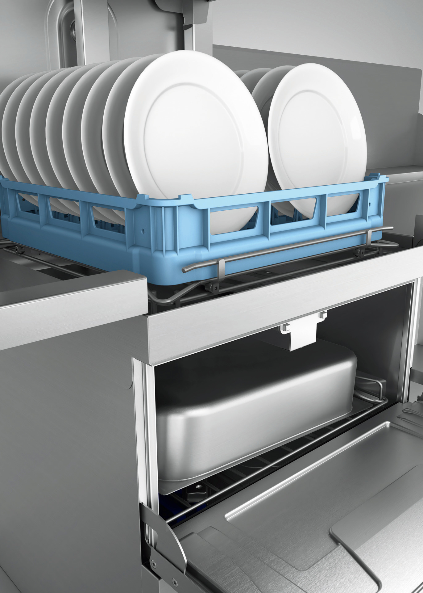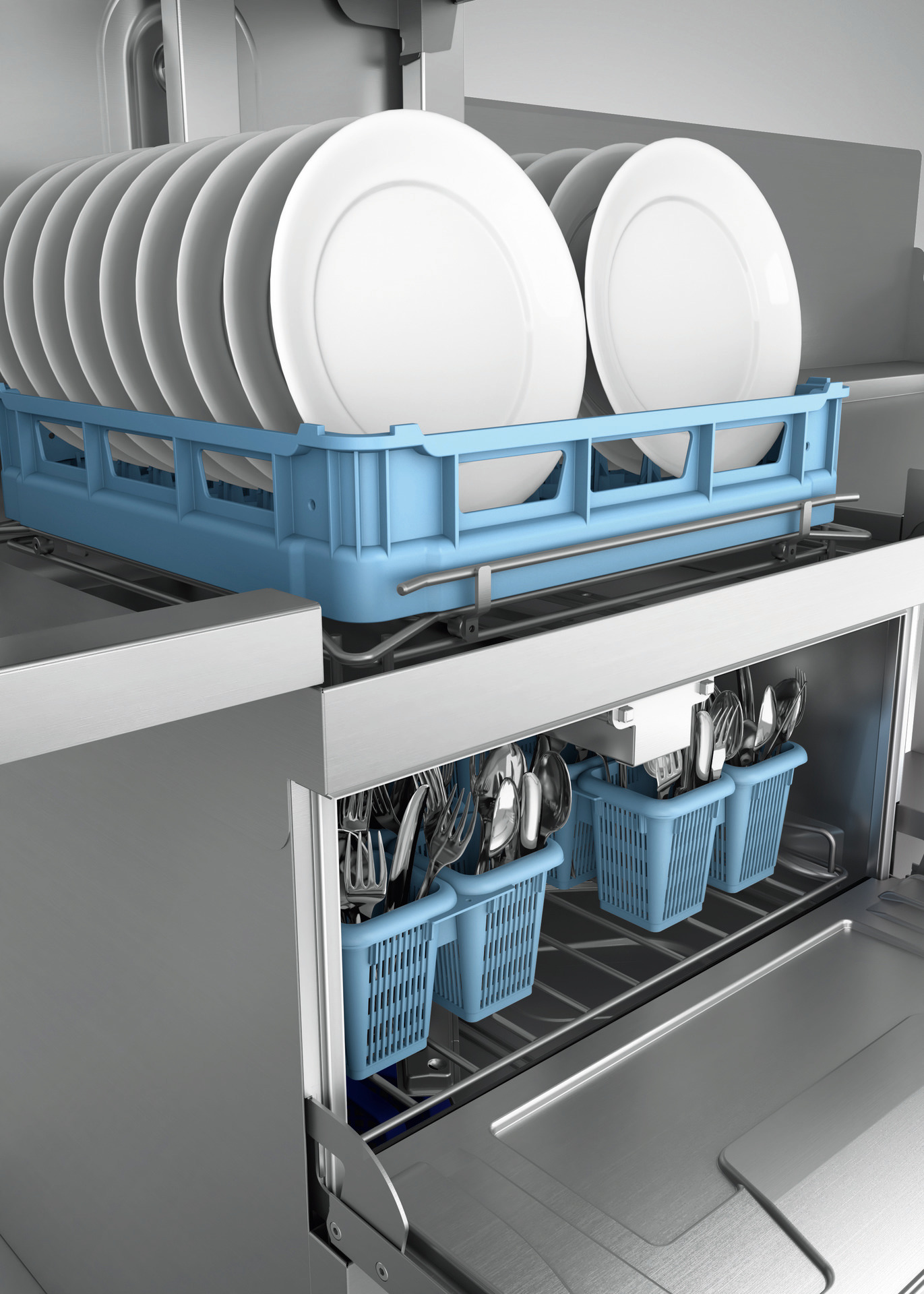 › Doppelte Kapazität› Maximale Flexibilität› Platzsparende Spülorganisation Ausführung:› Two-Level-Washer mit 2 Waschkammern, gerade› 7 Automatikprogramme: Kurz-, Standard-, Intensiv-, Dauerwasch-, Hygiene-, Stärke-Abbau- und Utensilien-Programm› Wärme- und schallisolierte Haube› Selbstreinigungsprogramm› Integriertes WLAN-Modul› USB-Schnittstelle zum Ausspielen von Betriebs- und Hygienedaten› Komplett anschlussfertig: Zu- und Ablaufschläuche, Anschlusskabel, Flüssigreiniger-Dosierpumpe, Klarspülmittel-Dosierpumpe, Klarspülpumpe, Ablaufpumpe, Rücksaugverhinderer› Haube, Tank, Gestell, Wascharme und Gehäuse aus CrNi-Stahl 1.4301› 1 Tellerkorb P-18-12, 1 Universalkorb B-00-07, 1 Einlegegitter für unteres Level, 1 Besteckkorb bestehend aus 4 Boxen› Einschubhöhe: Oberes Level: 440 mm / Unteres Level: 235 mm (Mitte 175 mm)