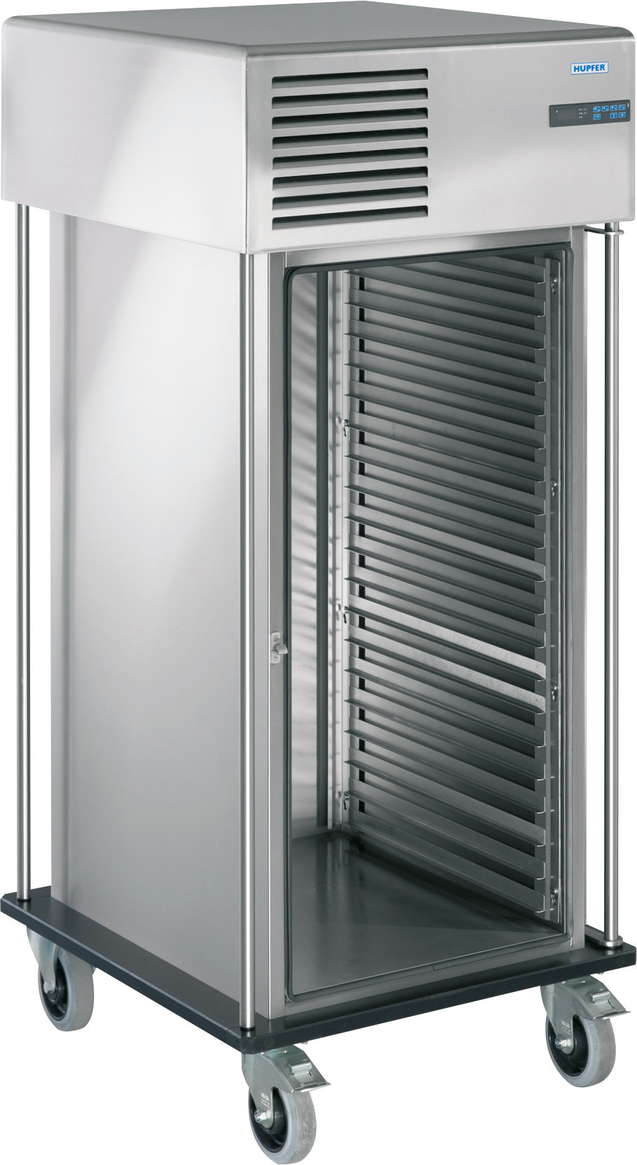 Hupfer Bankettwagen Umluft gekühltBKW 1/40 B-GN-57,5 UK Das Multitalent für die Speisenlogistik – der Köhler Bankettwagen von Hupfer › Anwendungsbereiche: Bankett / Veranstaltungen, Altenheim, Catering, Außer-Haus-Verpflegung› hygienisch einwandfrei, leichte Reinigung› für max. 40 x GN 1/1 Behälter oder Rost› Höhenraster: 57,50 mm› mit Breiteinschub (530 x 325 mm)› Temperaturbereich: +2°C bis +8°C› Nutzlast: 200,00 kg› 2 Bock-, 2 Lenkrollen mit Feststeller ø 160 mm› Hauptbauweise: geschlossen, doppelwandig, einteilig