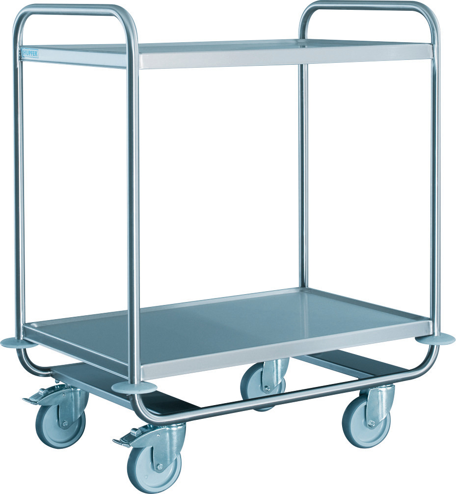 Hupfer ServierwagenSSW 8x5/2 › Material: Edelstahl› schwere Ausführung› Belastung pro Bord: 60,00 kg› Gesamt-Tragkraft 120,00 kg› Borde verschweißt› Nutzhöhe zwischen den Borden 591 mm› Höhe oberstes Bord 920 mm› 4 Lenkrollen ø 125 mm, stahlverzinkt / davon 2 mit Totalfeststellern
