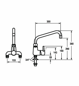 Gastro 2-Loch Standhebelmischer AD 153 A 300 Standanschl. 45 mm ganzchrom