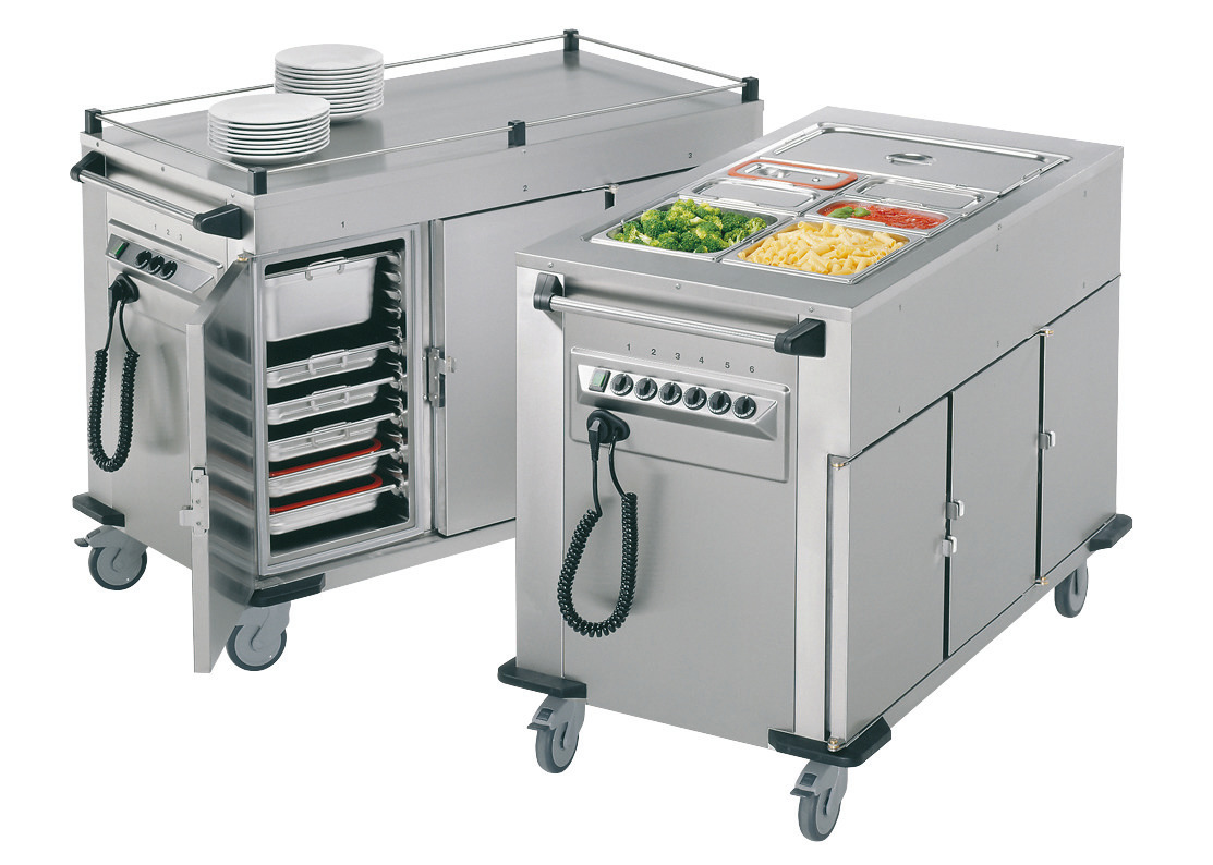 Speisenausgabewagen 3 Fächer je 8 Einschübe / beheizt /mit Warmhaltebecken