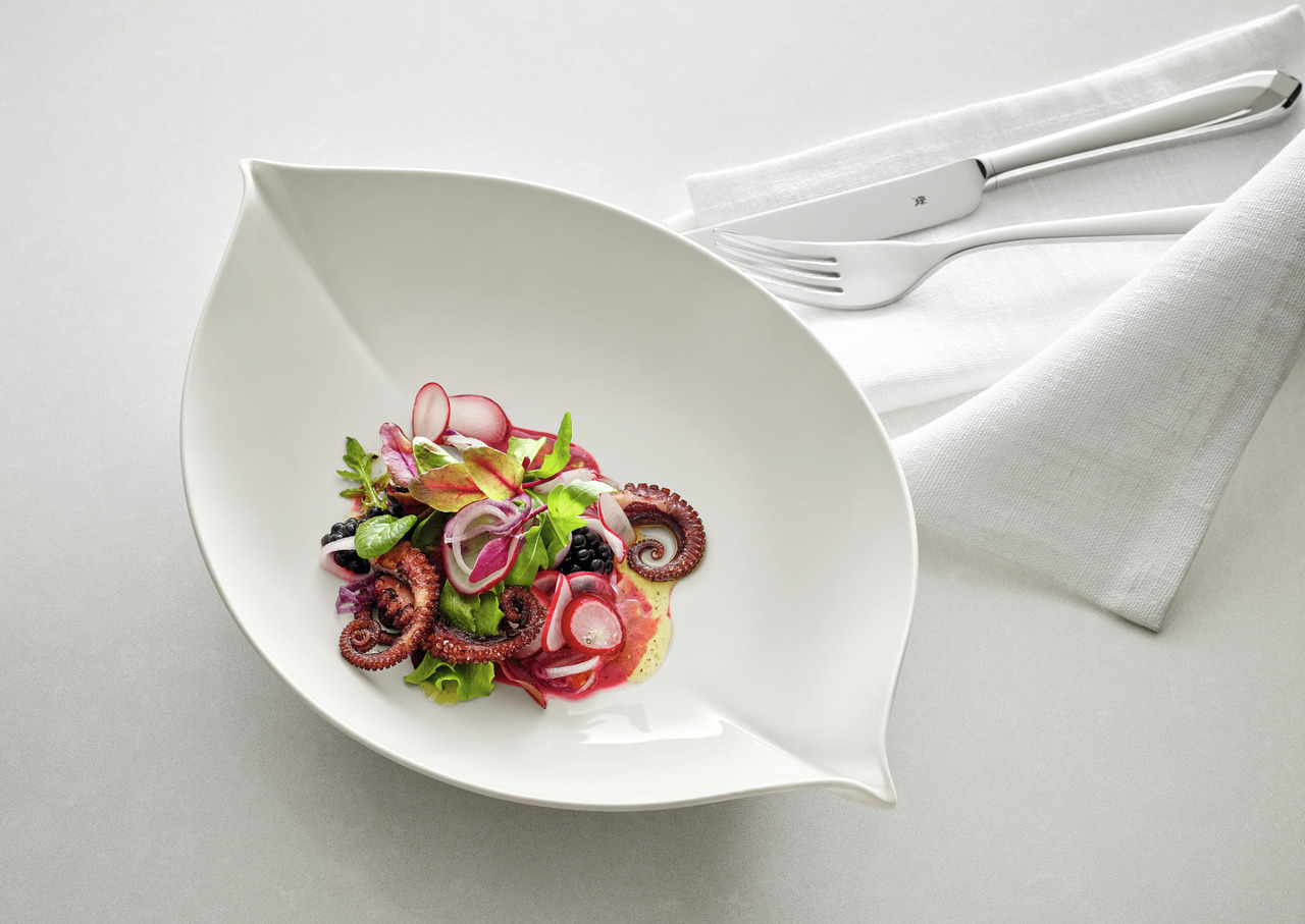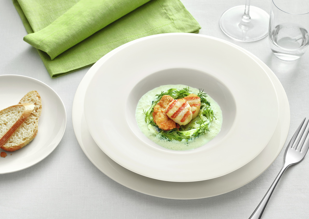 hygienesicher / hohe Kantenschlagfestigkeit / splitterbeständig / widerstandsfähige Glasur / gute Wärme-/Kältespeicherung / spülmaschinenfest / stapelbar / temperaturwechselbeständig / minimale Toleranzen Schönwald, Delight Wie lässt sich zeitgemäßer Luxus subtil interpretieren? Delight gibt eine überzeugende Antwort. Die Kollektion verwöhnt die Gäste mit dezentem Understatement. Der Leitgedanke der Neuentwicklung von TAFELSTERN: souveräne Leichtigkeit. Und die beginnt mit dem Einsatz eines faszinierenden Materials – Noble China. Diesem dünnen innovativen Hartporzellan, das ganz ohne Blei, Cadmium oder tierische Komponenten auskommt, verdankt die neue Kollektion ihre unglaubliche Feinheit.