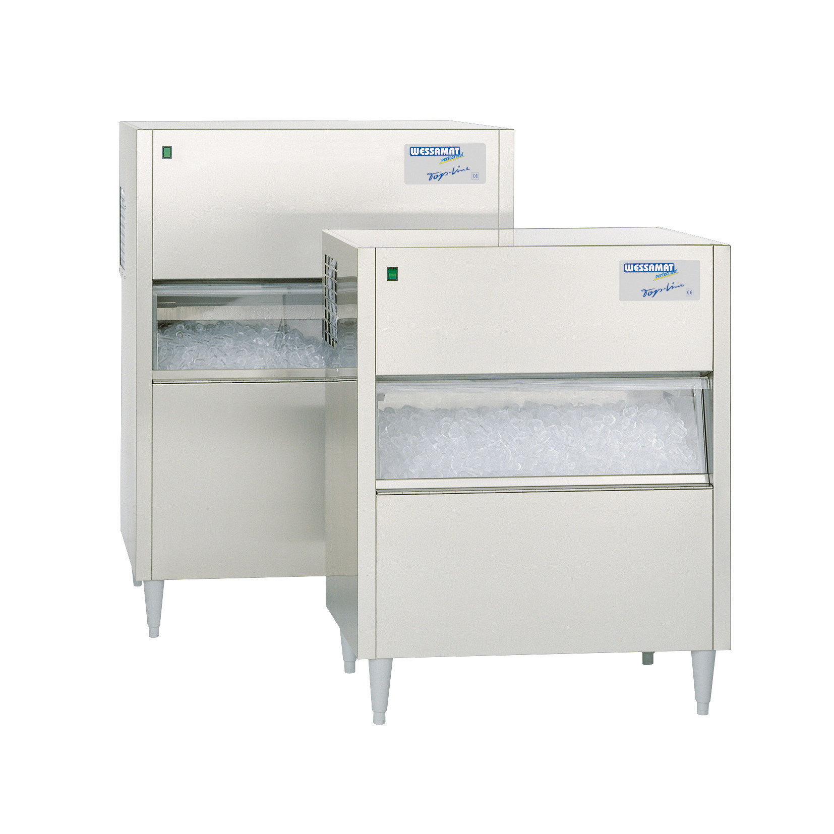 Wessamat Eiswürfelbereiter für HohleiskegelTop-Line W 121 WMade in Germany mit 2 Jahre Fachhändler-Gewährleistung Kompaktes Premium-Gerät zur Herstellung von kristallklaren und hygienisch einwandfreien Eiswürfeln für Gastronomie und andere professionelle Einsatzgebiete Eiswürfelformat: Hohleiskegel, 16 g, einzeln geformt, ø 33 x 37 mm Besondere Merkmale: › geräuscharme Eisbereitungstechnik (Wellentechnik)› automatische Restwasserentleerung nach jeder Produktionscharge› hygienischer Vorratsbehälter aus Edelstahl mit doppeltem Boden und Drainagesystem› keine Wasserenthärtung notwendig› leichte Reinigung durch abgesenkte Wanne Ausstattung: › wassergekühlt – für hohe Umgebungstemperatur / Luftfeuchtigkeit geeignet› zur freistehenden Installation› Gehäuse und Vorratsbehälter aus Edelstahl› steckerfertig mit Anschlussleitungen Arbeitssicherheit / Leistung: › HACCP-konform› 126 kg Eiswürfel/Tag entsprechen 7.875 Stück› Kapazität Vorratsbehälter: 80 kg› Wasserverbrauch: 2,2 l/kg Eis (Produktion)› Wasserverbrauch: 16 l/kg Eis (Kühlung)› Kältemittel: R 404 A (optional mit R 290 lieferbar) Lieferumfang: › Gerät› Gerätefüße, höhenverstellbar› Kabel› Anschlussleitungen