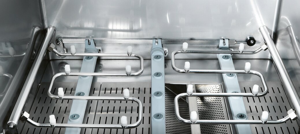 Winterhalter GerätespülmaschineGS 630 Sonderausführung Serienausstattung: > Hygiene-Innenraum > erfüllt die Hygiene-Anforderungen der gültigen Normen > geführtes Selbstreinigungsprogramm > zielgruppenspezifische Softwareversionen > Einweichprogramm > Hochleistungsspülsystem mit VarioPower > Vierfach-Filtration (Flächensieb, Siebzylinder, Pumpensieb, Mediamat) > Tankwasserwechsel- und Entkalkungsprogramm > Chemiedosierung: Klarspüler mit Sauglanze > ein Korbpaket nach Wahl > aktives Energiemanagement > zeitgesteuertes Ein- und Ausschalten > Touchscreen mit Ein-Knopf-Bedienung > zusätzliche Starttaste auf ergonomischer Höhe > hochklappbarer Korb > Standby-Modus > Leckagesensor > Tankheizkörper mit selbstrückstellender Thermosicherung > Grundreinigungsprogramm für Spülgut