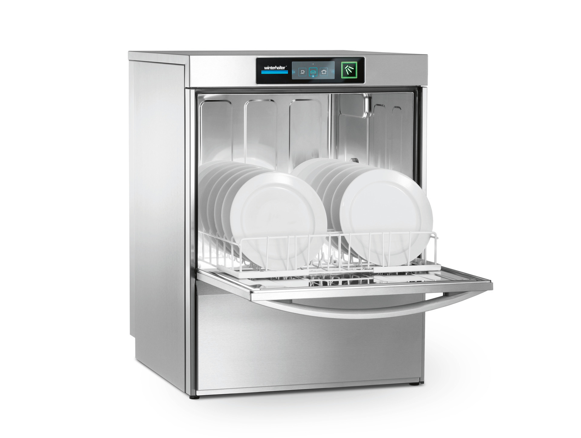 Winterhalter GeschirrspülmaschineUC-L Untertischspülmaschine Ausführung:› Wasserenthärtung› Sauglanzen mit Niveau-Überwachung für externe Ansaugung von Reiniger und Klarspüler› Reinigerdosiergerät› Klarspülerdosiergerät› Ablaufpumpe› Spülleistung: 40 / 28 / 24 Körbe/h Besondere Merkmale:› kombiniertes Spülen von Geschirr, Besteck und Glas› geräuscharm, im Thekenbereich einsetzbar› geringer Nachspülwasserverbrauch: 2,40 l/Spülgang› Spüldruckanpassung (VarioPower)› optional: internetfähig mit Auswertung und Analyse der Betriebsdaten (Connected Wash) Serienausstattung:› Touchscreen mit einfacher Bedienung über Piktogramme› farbcodierte Ein-Knopf-Bedienung› Spülfortschritt und Maschinenzustand werden optisch und akustisch signalisiert› zeitgesteuerte Inbetriebnahmeautomatik› Wartungsintervallanzeige› Sanftanlauf› elliptische Spülfelder für flächendeckende Spülkraft› druckunabhängiger Boiler› Multiphasing (Maschine mit Gleich- oder Wechselstrom verwendbar)› Sprühwasserschutz IPX3› Rückflussverhinderung zur wassertechnischen Sicherheit Hygieneausstattung:› 4-fach-Laugenfiltrationssystem mit Trübungssensor› tiefgezogener Tank, tiefgezogene Korbführung› Selbstreinigungsprogramm› integrierte Hygiene- / Betriebstagebücher Spülmaschinenprogramme:› 3 Standardprogramme› ECO-Sparprogramm› Kurzprogramm› Silenceprogramm› Intensivprogramm› Grundreinigungsprogramm› Entkalkungsprogramm› Sonderprogramm, frei konfigurierbar Lieferumfang / Zubehör:› Tellerkorb, 6 bzw. 9 Reihen› Tassenkorb, 5 Reihen› 2 Besteckköcher› Netzanschlusskabel› Zulaufwasser- und Ablaufwasserschläuche